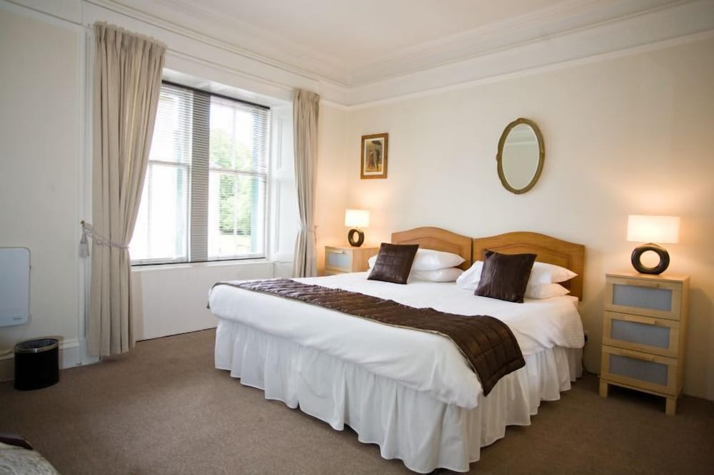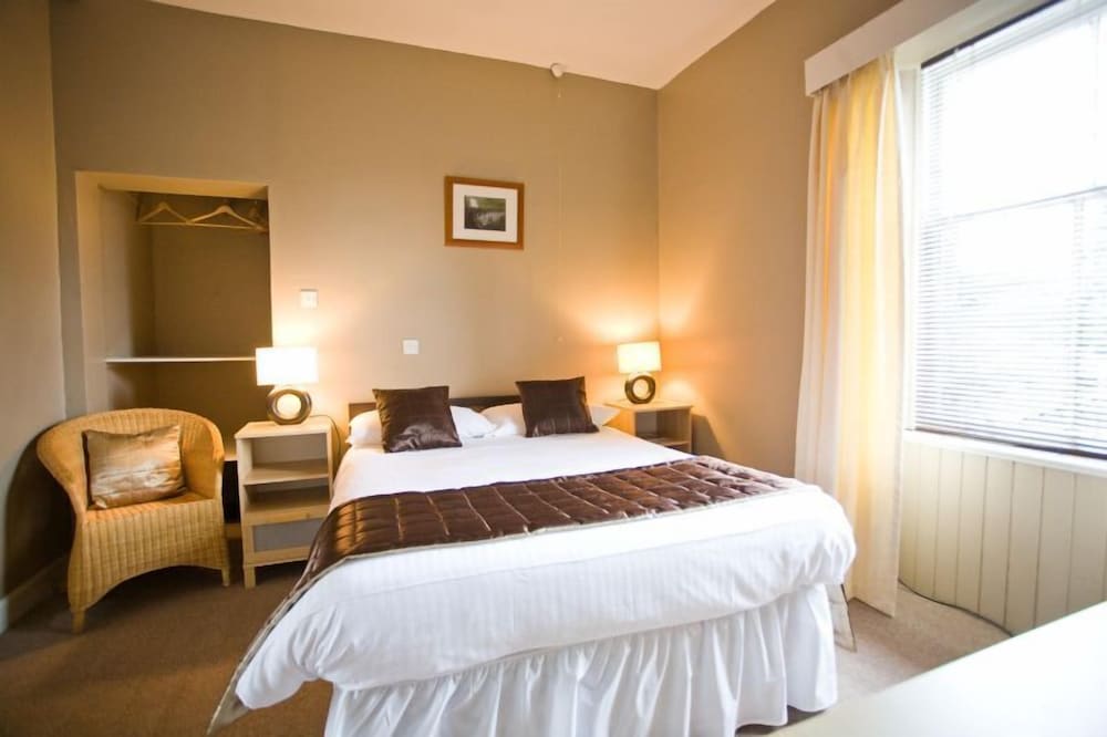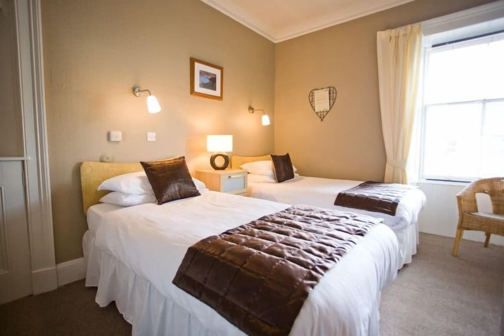 I booked 2 rooms last minute to attend a family funeral. It was warm and welcoming, it is an old building with character and food was available until 9.30pm on a Sunday. I chose the twin room(5) as it has a separate shower. The rooms looked very nice and the sherry (not the best!) and chocolates( gorgeous) were a nice touch but the mattresses on all beds were in need of replacement or at best turning and a topper, you could feel all the springs.There was an additional heater in both bedroom, the WiFi code BUT I had to balance the kettle on a magazine on top of the bin at a plug near the door. A socket by the credenza was in the narrow gap to the wall, another was behind the night stand with again no easy access. There was no extractor fan in the bathroom and the window unable to be open as the sash was broken or a spray provided. The shower was a quadrant type cabinet with double doors. Nit-picky maybe but the shower pressure was poor, took a long time to warm to even just usable but never got hot thought it was set at maximum. My husband struggled so much I had to open the doors to wash his back. There was no-where to put shower gel and shampoo etc except the floor which meant bending in the very cramped space. Breakfast was great with a limited selection of cold and juice but good selection of cooked - those that had the full scottish didnt eat much else all day. It was good which is why I'm being so picky, but with a bit of thought it could be great.