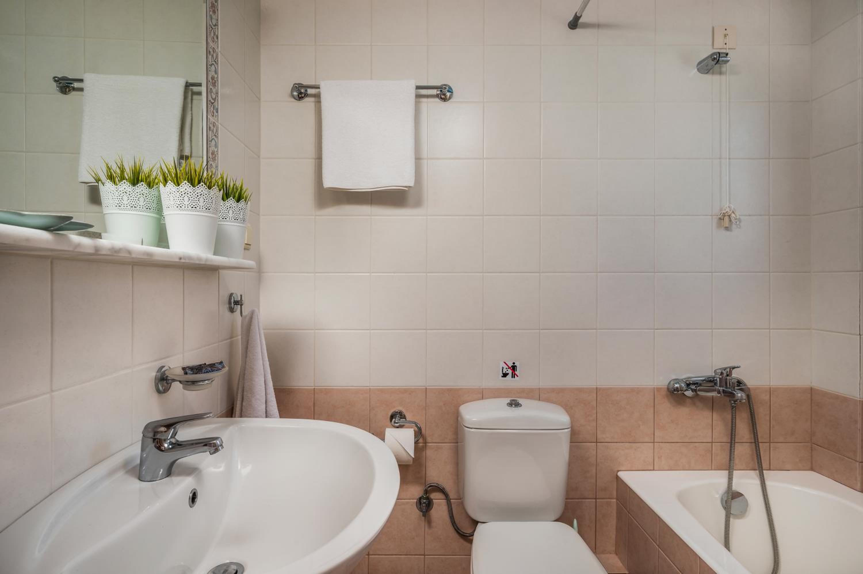 Le logement pour 4 est top avec deux belles chambres, grande terrasse, salle de bain avec baignoire, cuisine suffisemment équipée et le tout climatisé biensur!