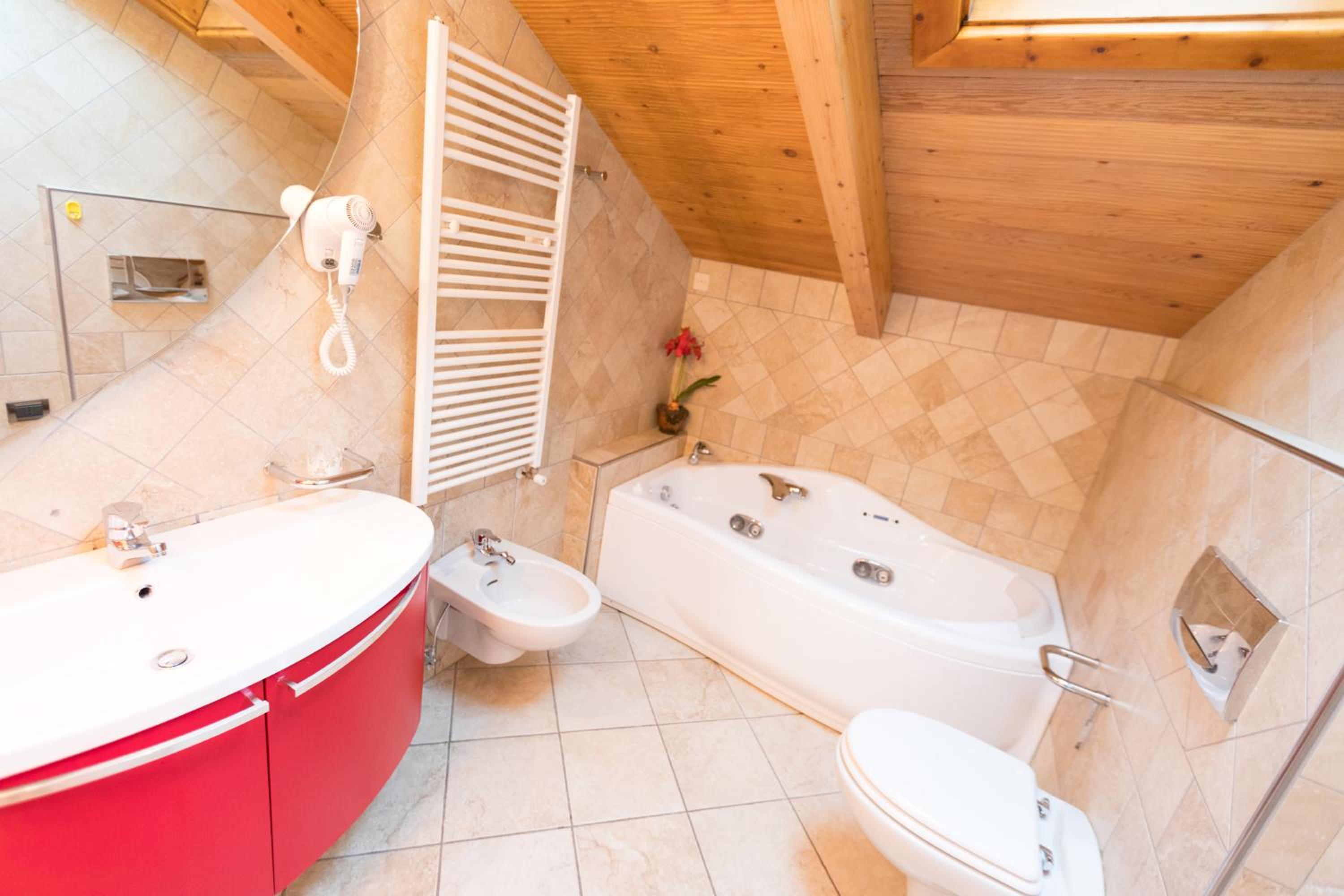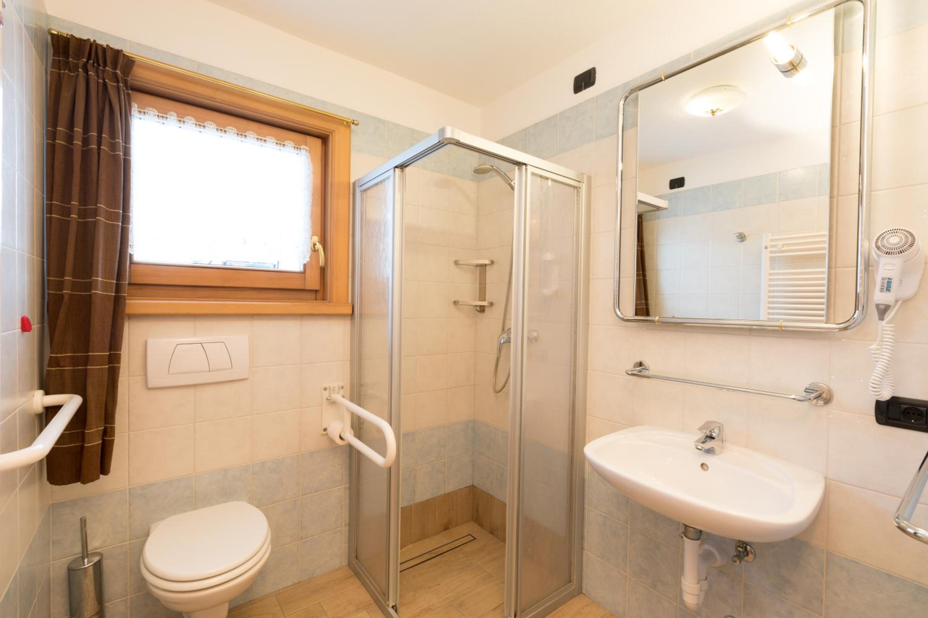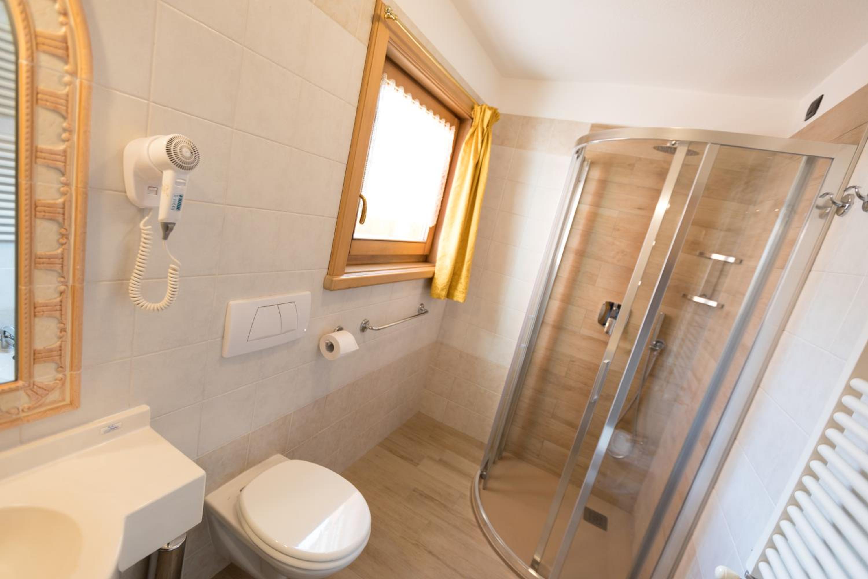 Das gebuchte Zimmer mit den Bildern haben wir nicht erhalten. Das Waschbecken war auf der Höhe meines Knies. So klein sind Italiener auch nicht.