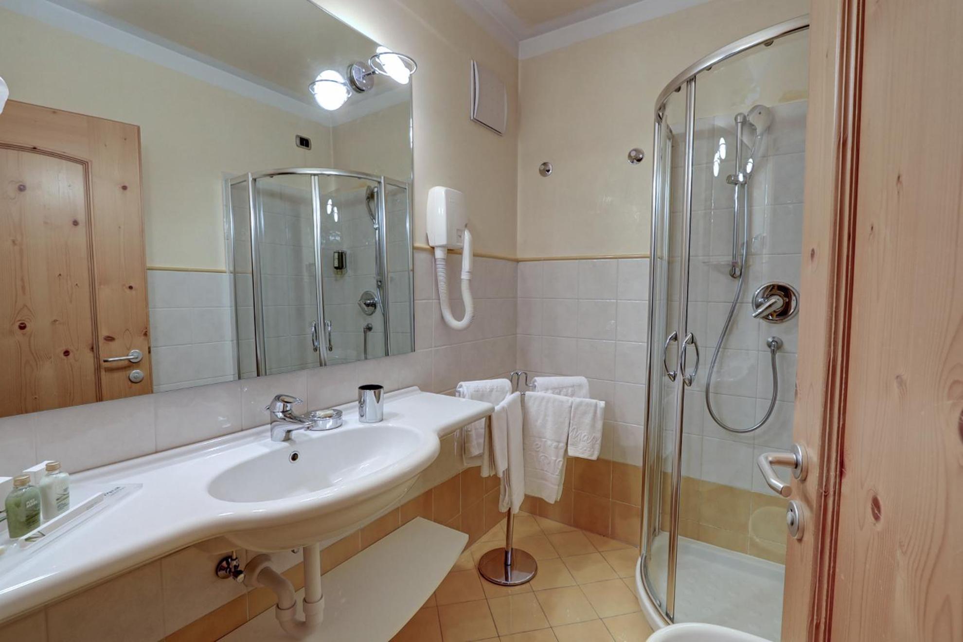 The family-run Leading Relax Hotel Maria, nestled in Moena, offers spacious rooms with stunning mountain views, free internet, and modern amenities like LCD TVs.