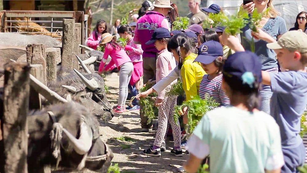 小朋友尤其喜歡給水牛和羊寶寶餵食。