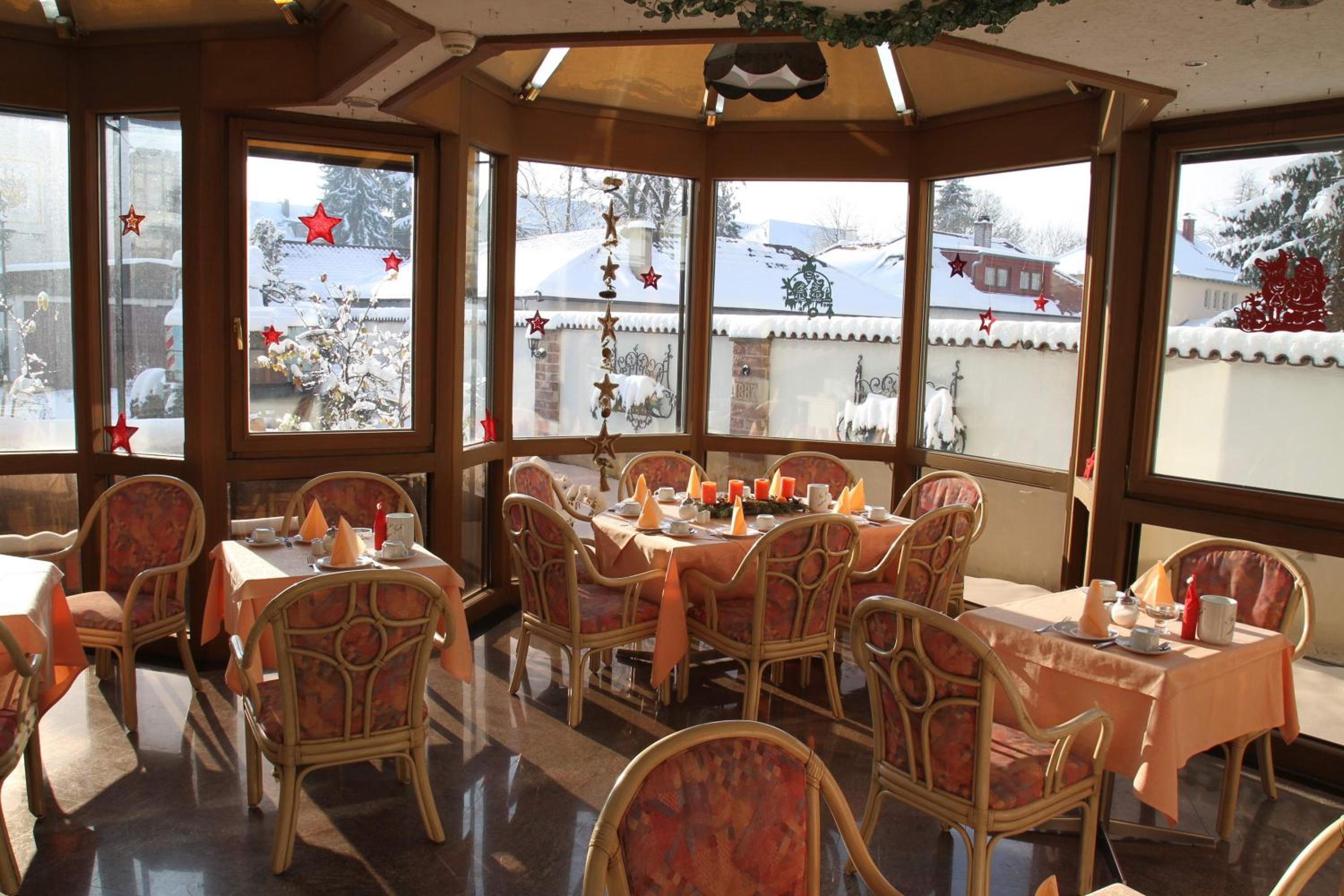 Die Lage ist in einer Verkehrsberuhigten Zone neben dem Scheffelplatz. Das Restaurant ist ein Brauhaus. Wenn man Zimmerservice nicht in Anspruch nimmt, bekommt man einen 5,-€ Gutschein fürs Restaurant.