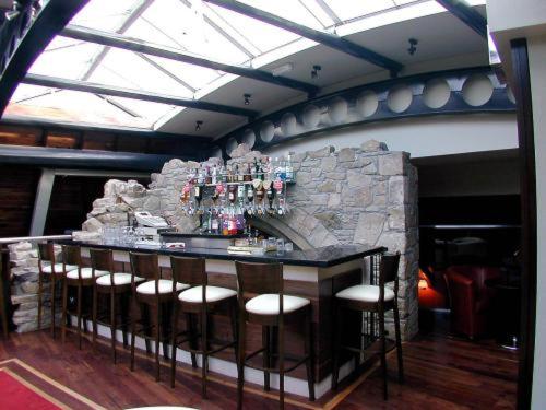 The decor was nice inside the restaurant- wooden. I didn’t stay at the hotel. The food was a lot less expensive than Dublin and the U.S.