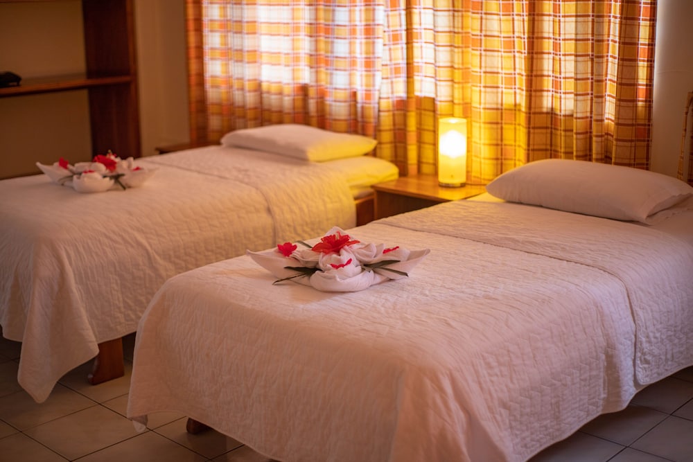 When we arrived at Hotel Red Booby, the room we had reserved (1 double bed and 2 twins) was not available. (even with written confirmation and I had pre-paid a month prior). We were put into a room with 3 twins half an hour later with no compensation. (none was given after contacting the hotel administration either).