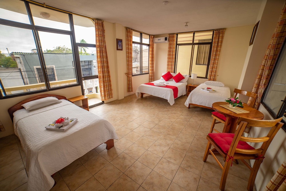 Excellent location just off main street in Santa Cruz. Basic but clean and reasonable while visiting Galapagos. Easy and short walking distance to harbor with plenty of tours and tour boats to choose from. Many good restaurants to choose from and even a nearby street with fresh local seafood right off the boat. In addition plenty of good shopping for local crafts, etc. Don't miss the Charles Darwin Research Center and Museum.