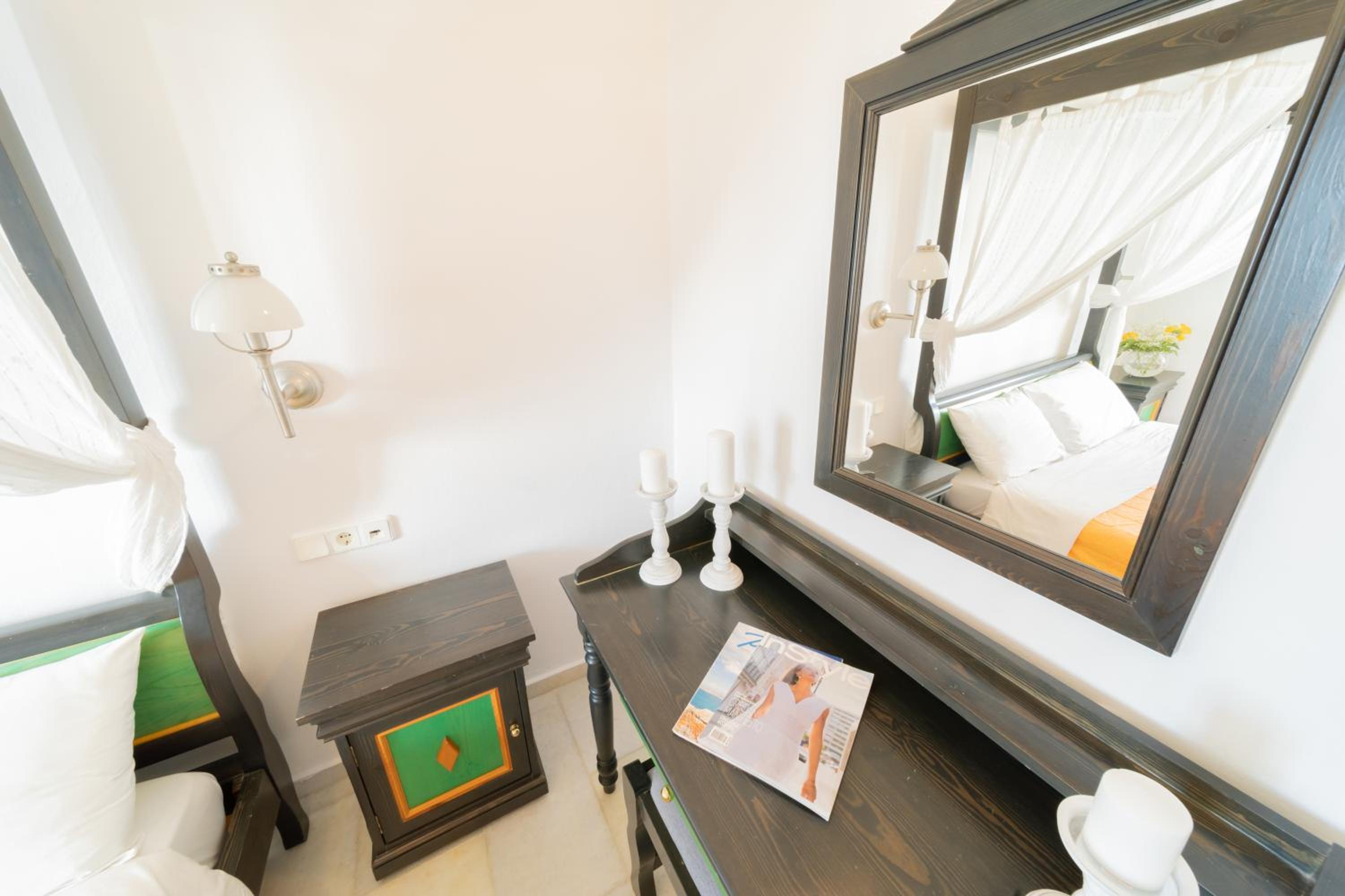 Charming Self-Catering Units: Enjoy the picturesque views of the Aegean Sea or lush gardens from your furnished balcony or patio. Each air-conditioned studio and apartment is equipped with a kitchen or kitchenette, satellite TV, and a modern en-suite bathroom.