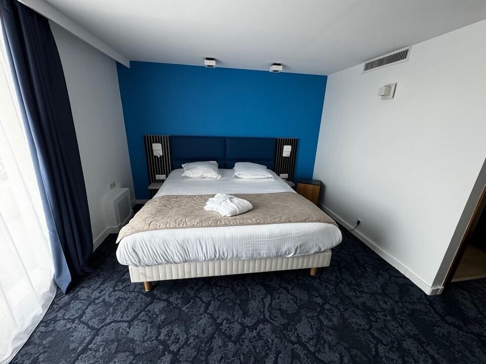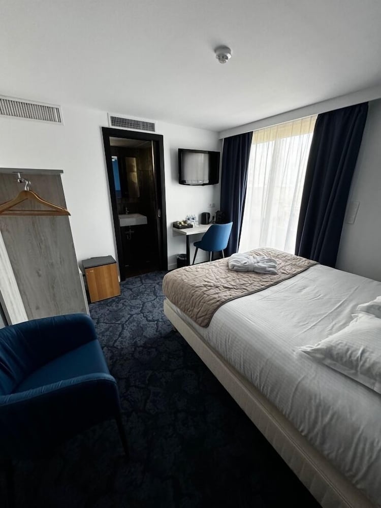 1er mauvaise surprise le parking est payant 19 euros la nuit … 2eme, un carreau cassé juste devant la salle de bain de quoi se blesser, d'autre part la commande de douche en mode italienne cassée , chambre propre sinon et pour finir le jour du check out , j'avais prolonger d'une nuit avec le collaborateur du responsable le soir , avec petit déjeuner inclus, le lendemain matin le responsable m'indique que nous devons payés en plus 40 euros par personne (80eur à 2 pour les petits déjeuners) et que c'était indiqué sur l'ordinateur me prenant pour un crétin au passage ce qui était un peu insultant, méthode commerciale très très discutable . endroit à fuir , je recommande pas du tout