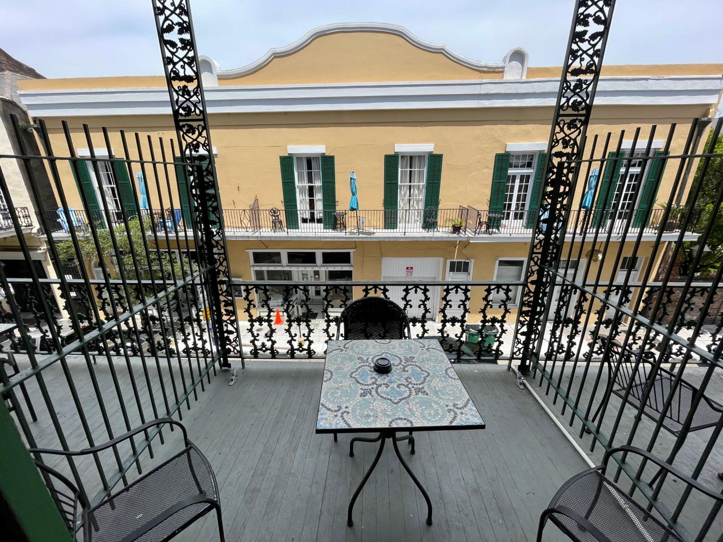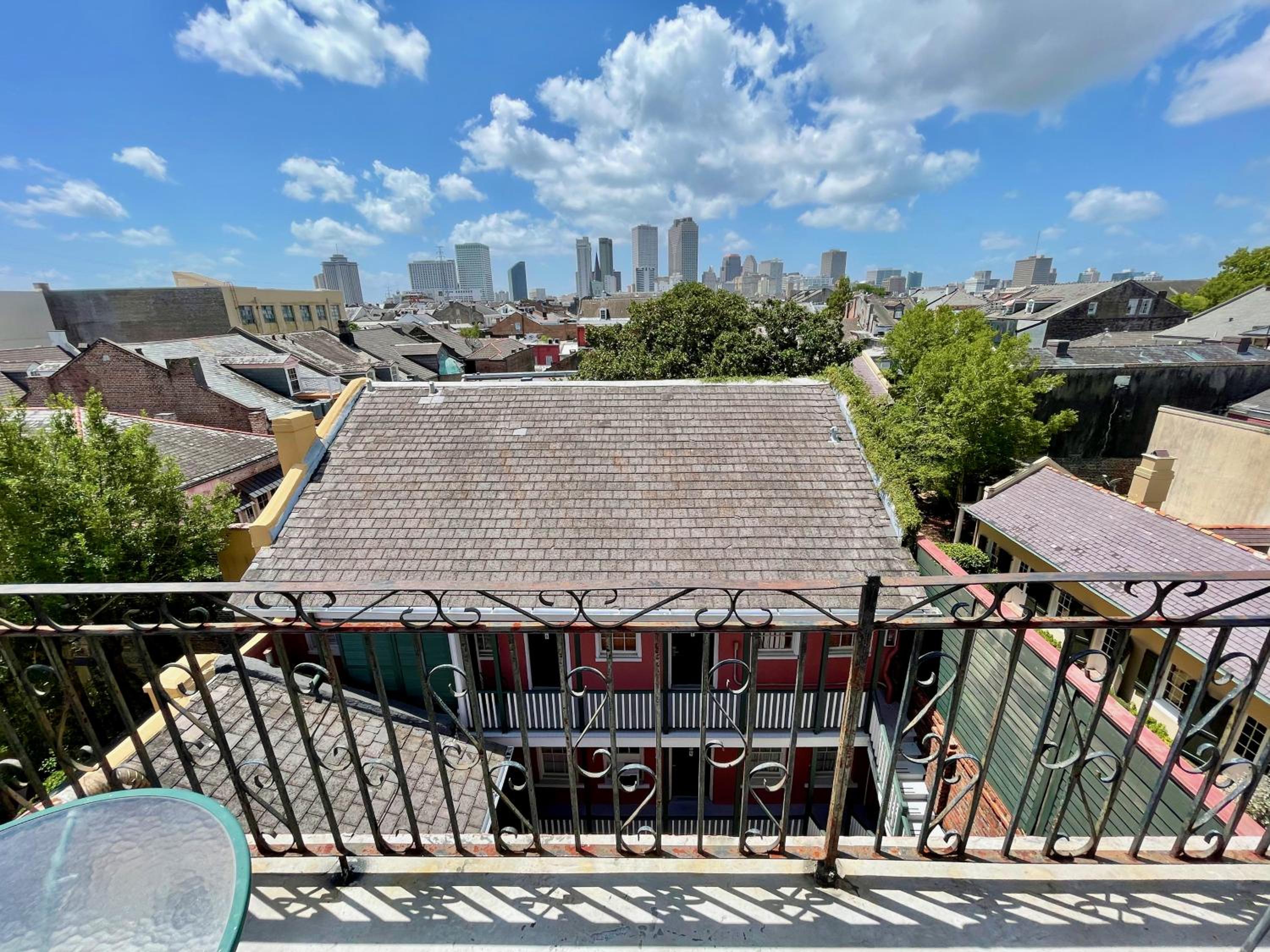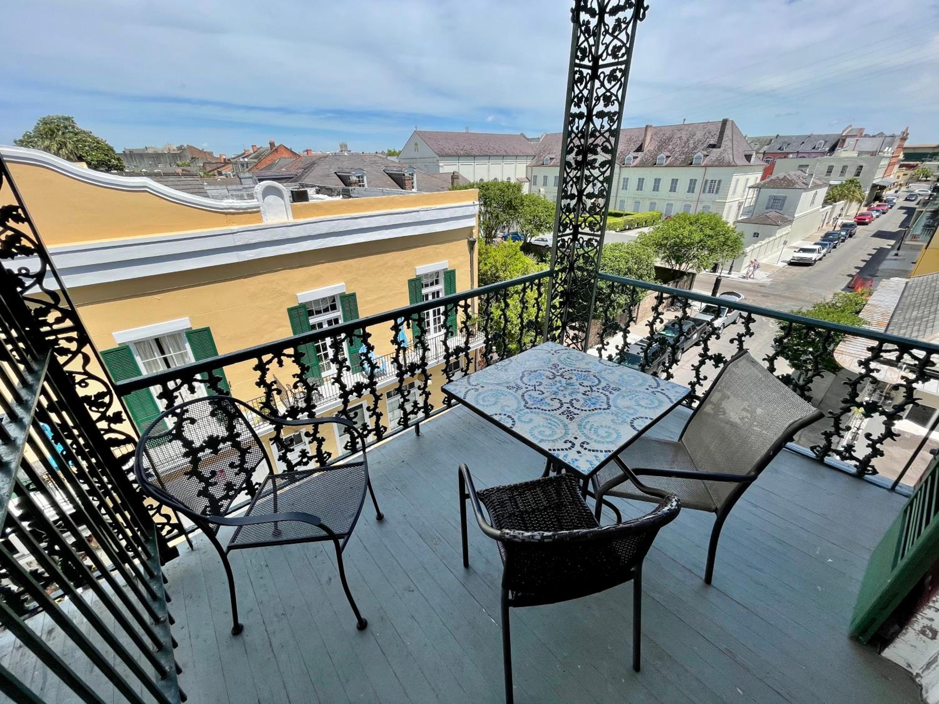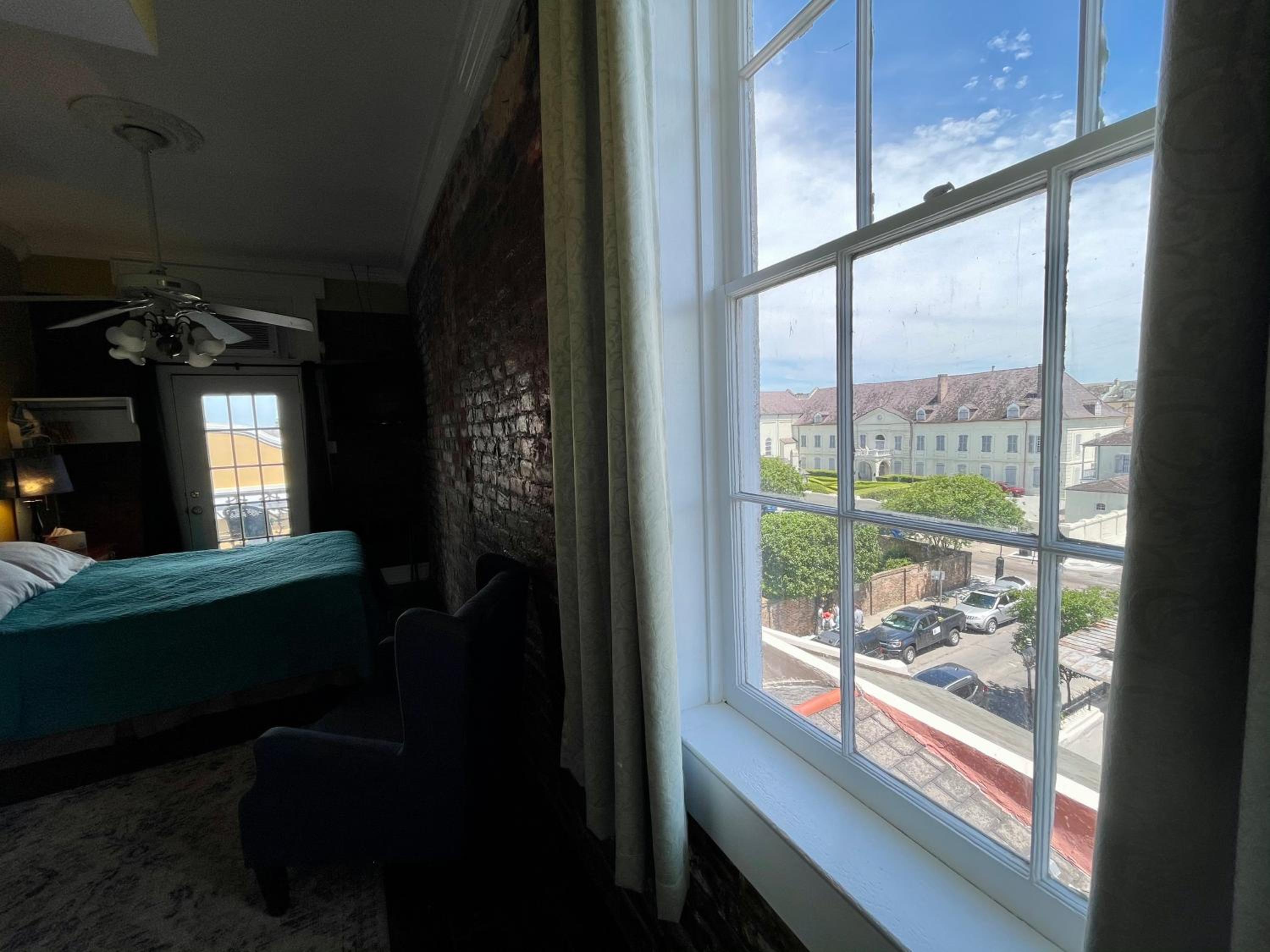 Room 400. Great top floor view views over the French Quarter. Ideal central location in a quiet street near the French Market. Friendly staff. Why stay in a chain hotel when you can experience this old world charm.