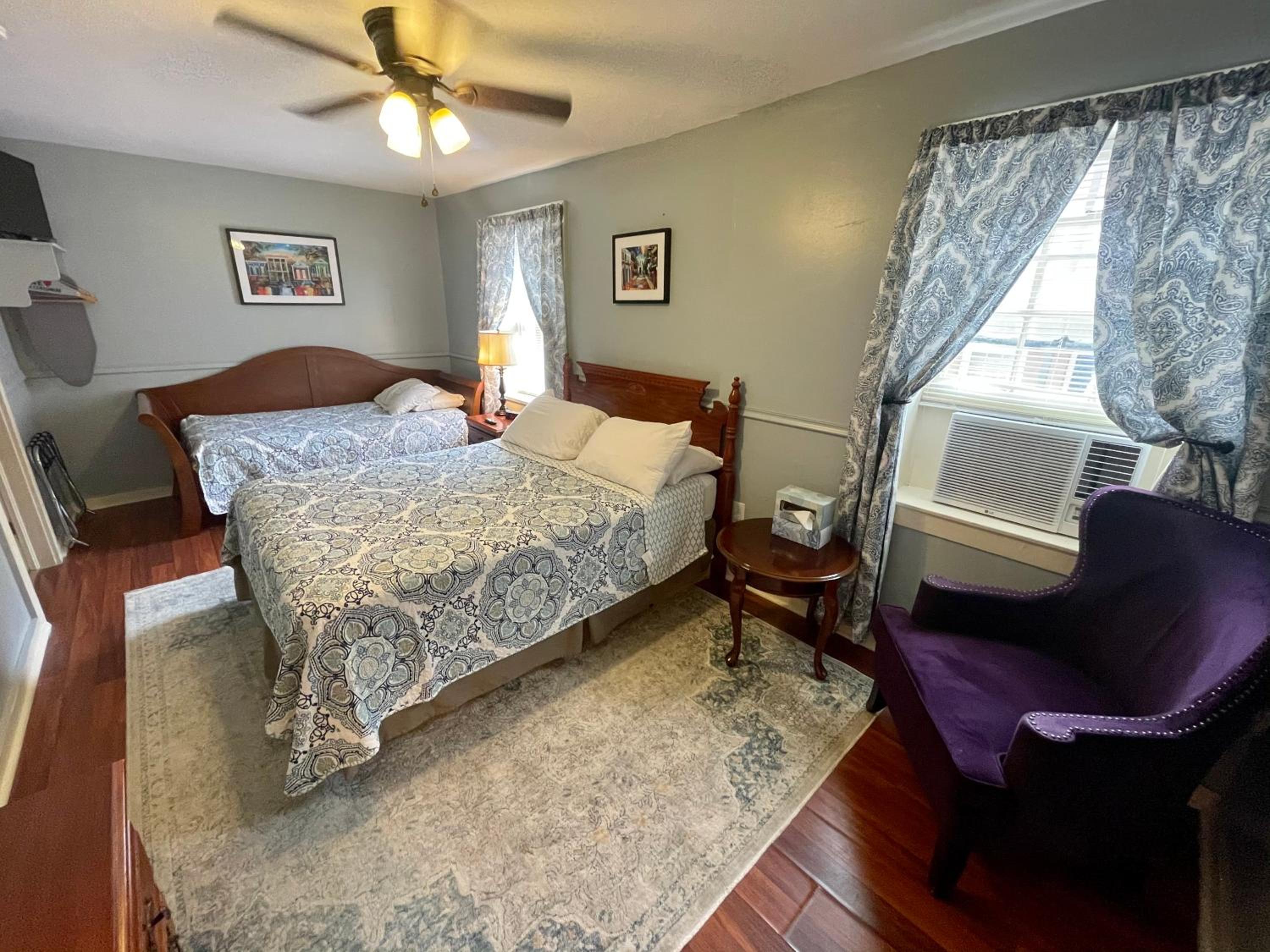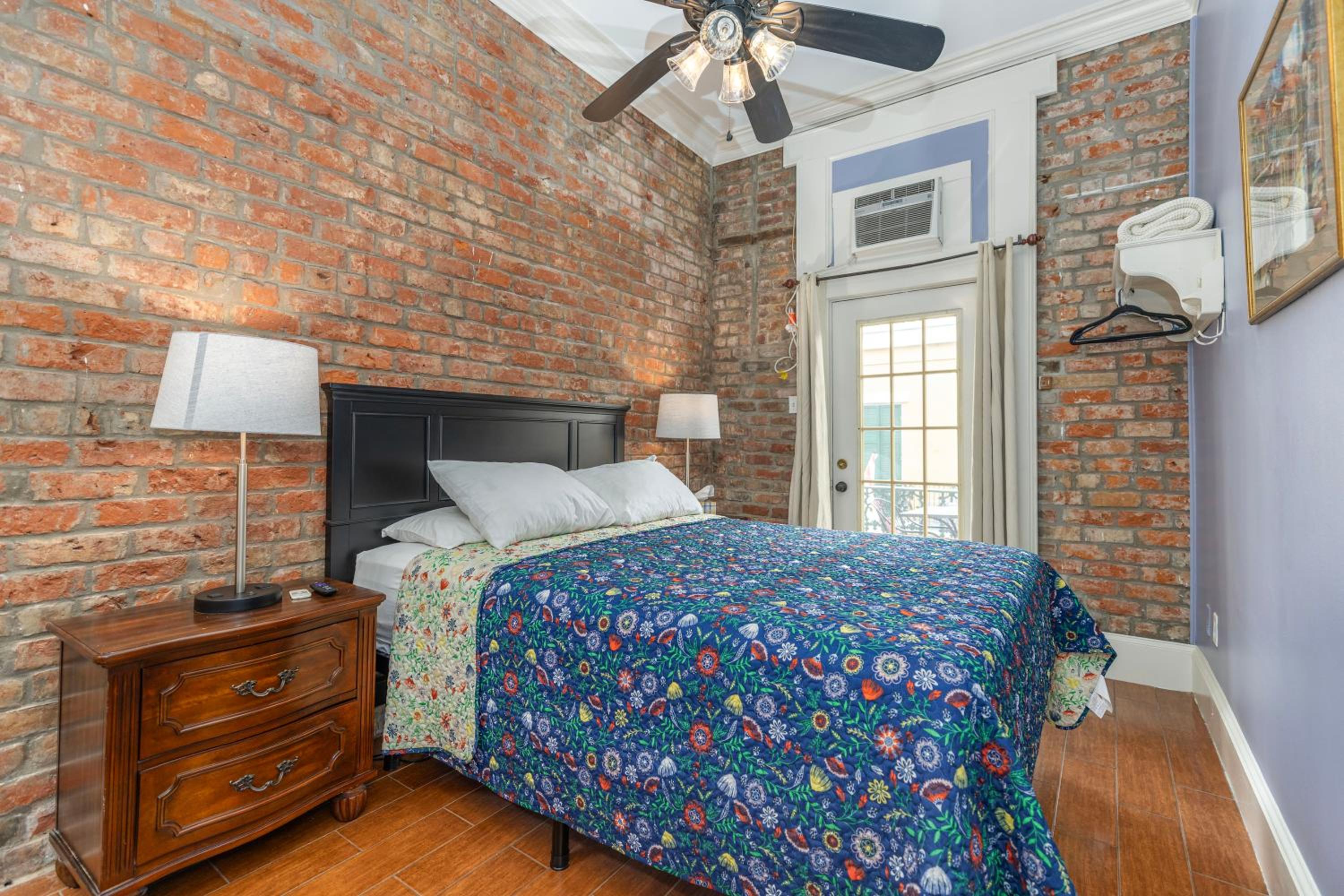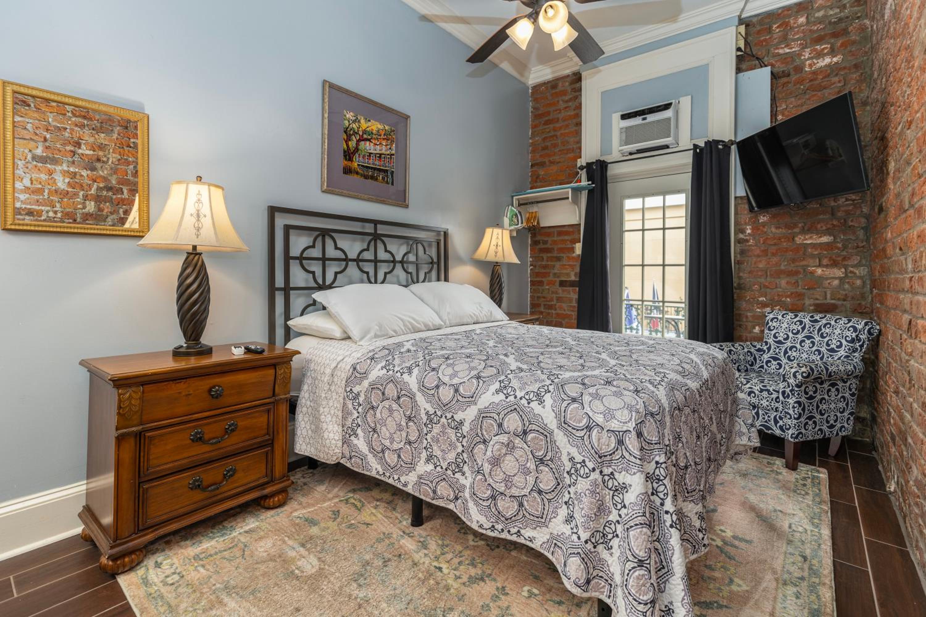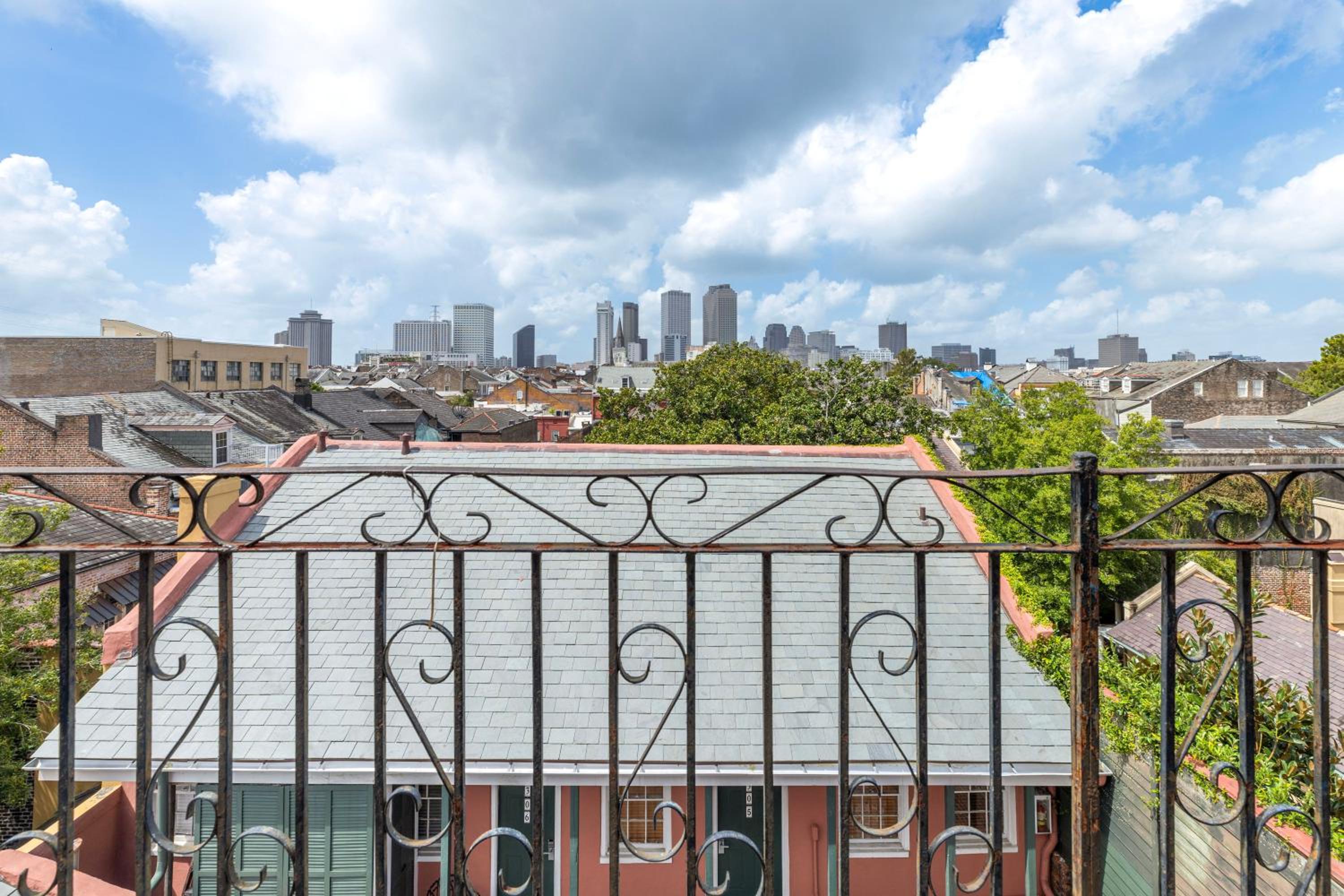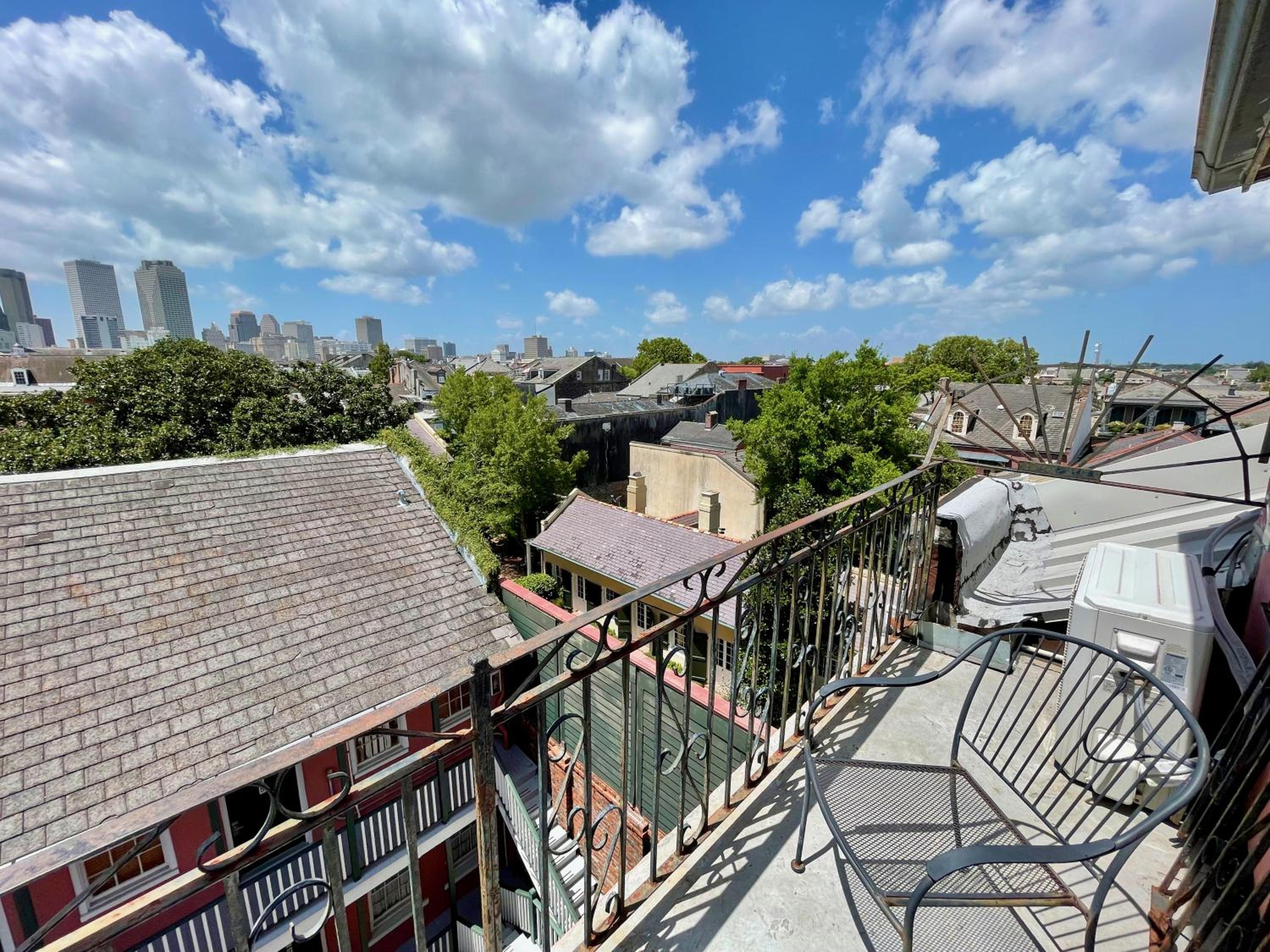 Room 400. Great top floor view views over the French Quarter. Ideal central location in a quiet street near the French Market. Friendly staff. Why stay in a chain hotel when you can experience this old world charm.