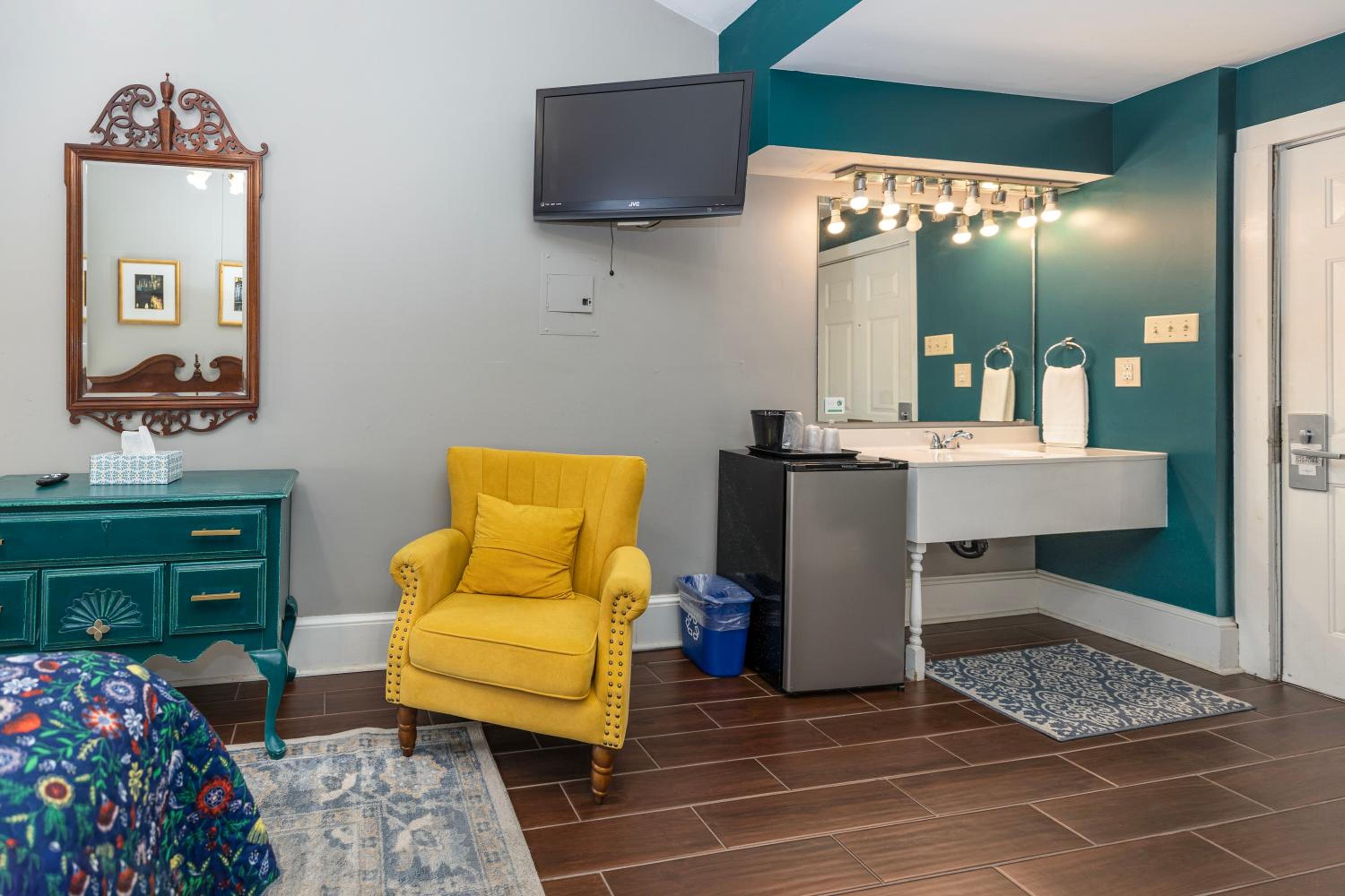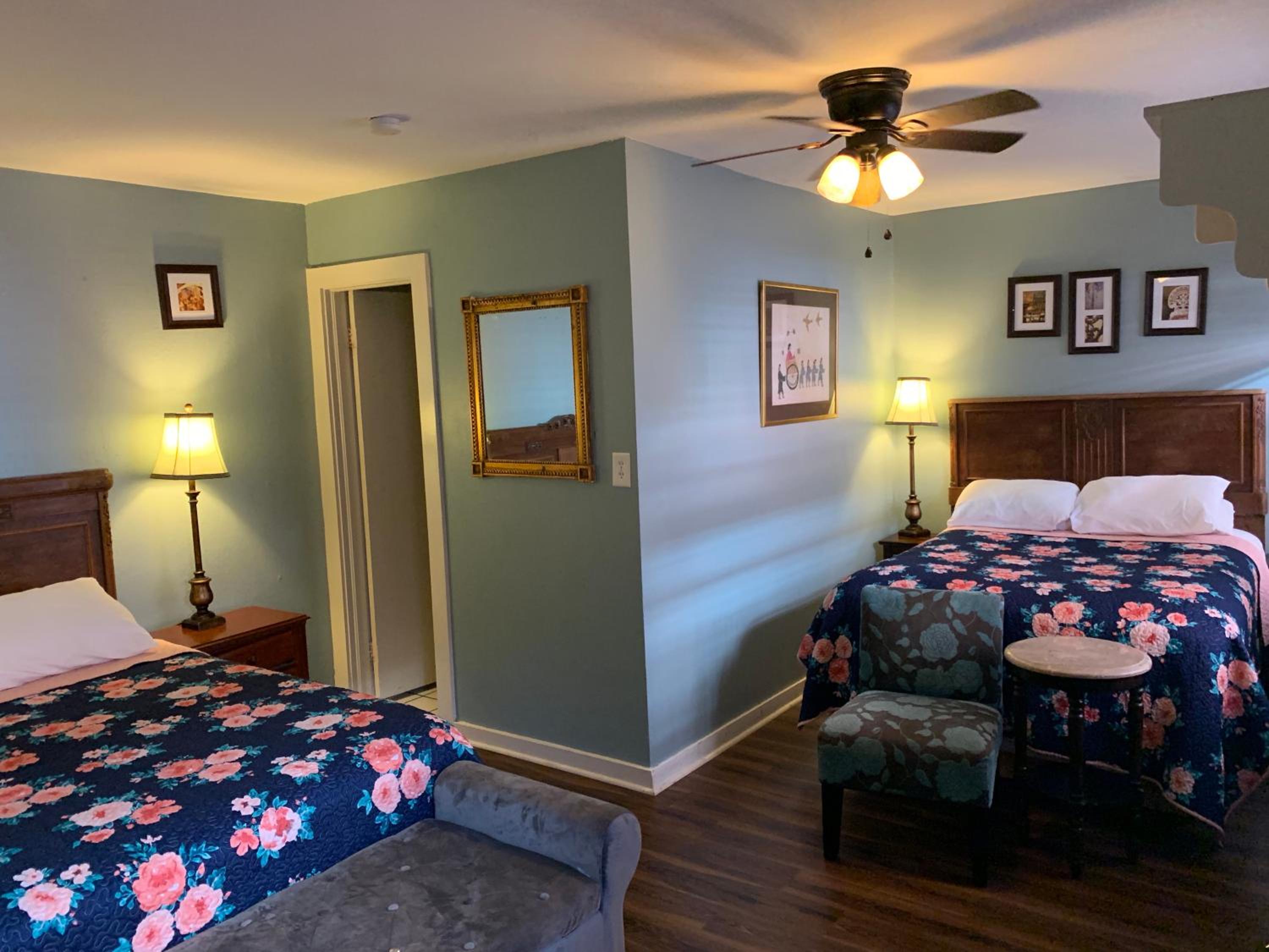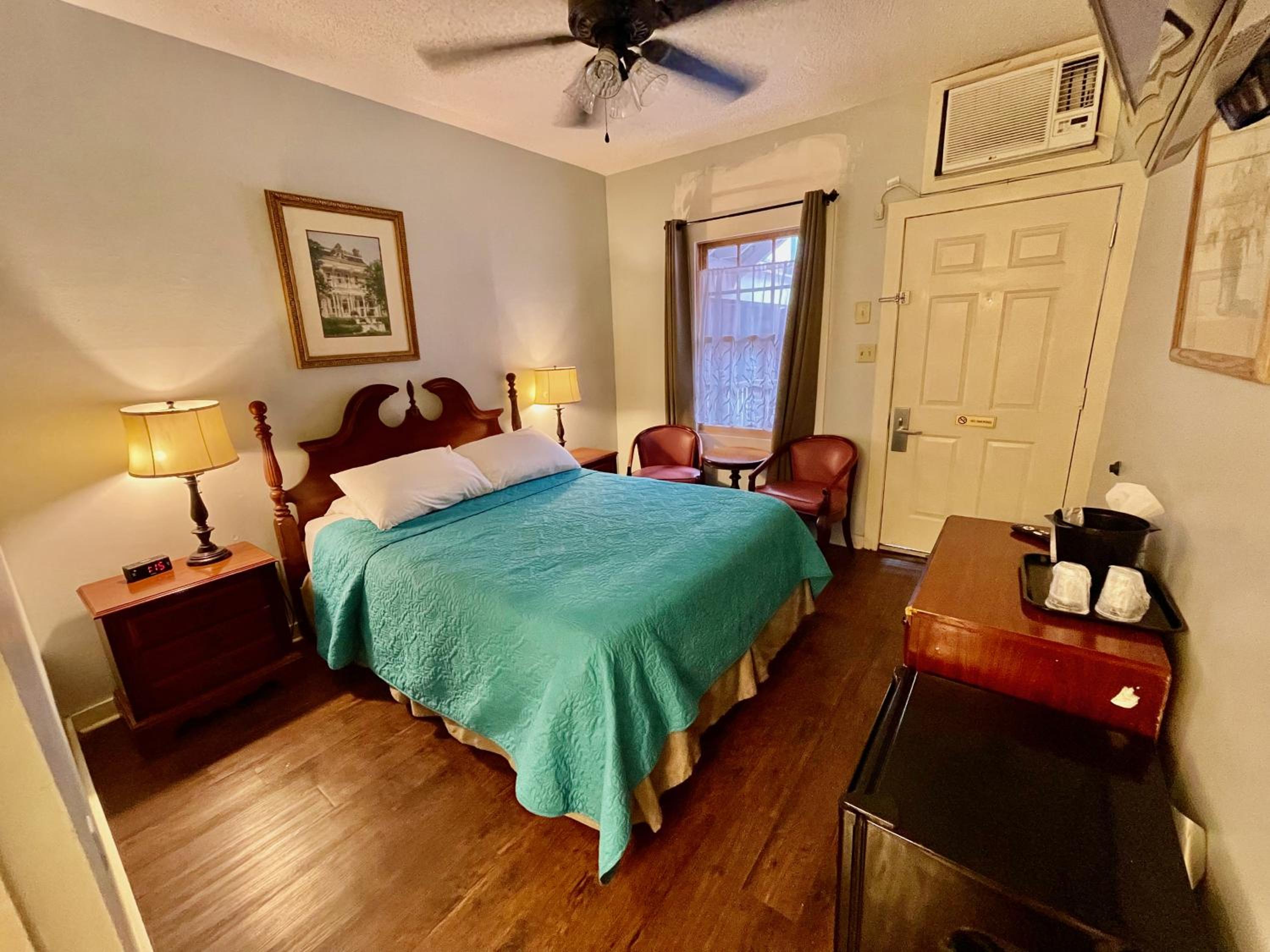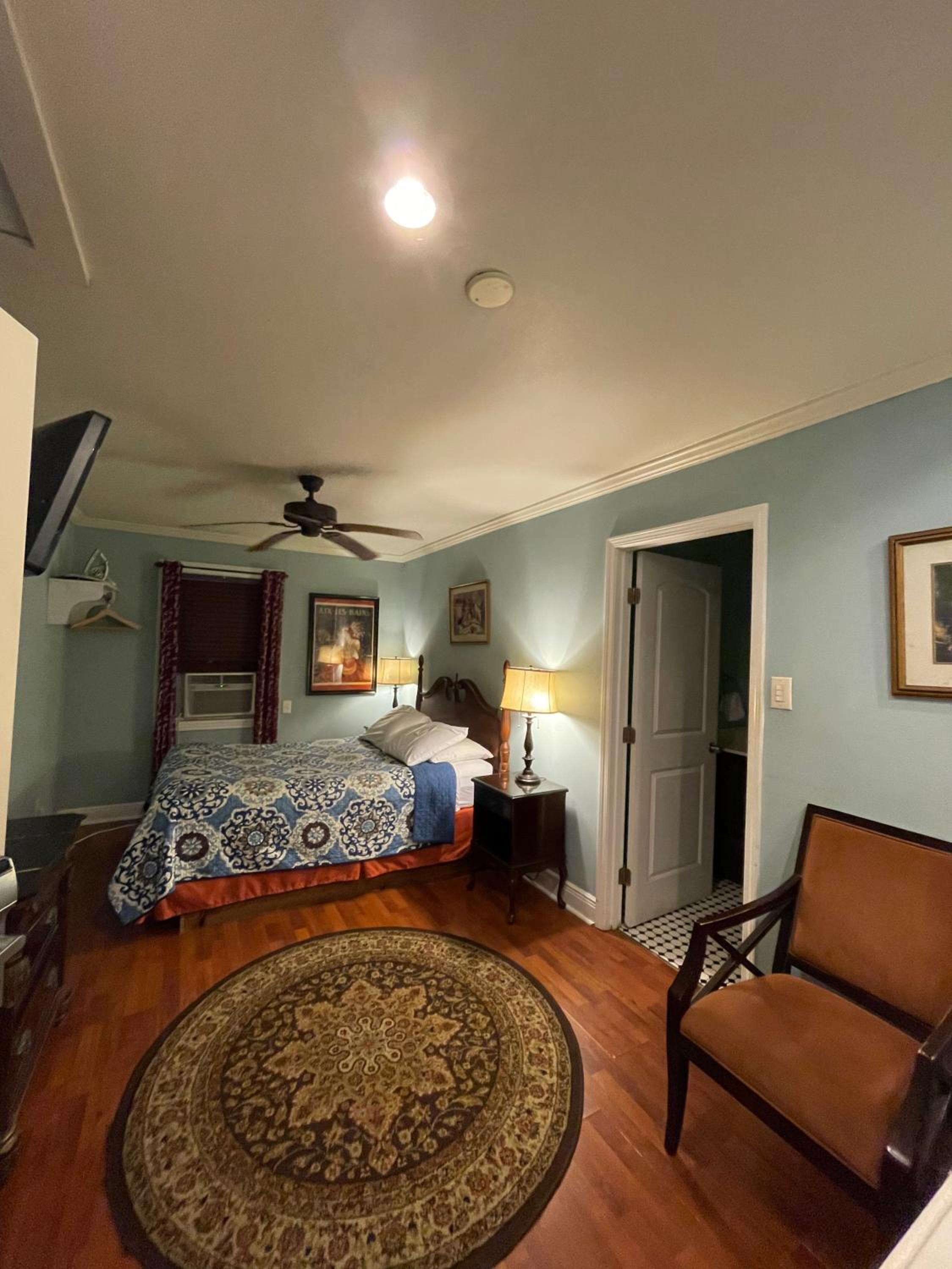 Room 400. Great top floor view views over the French Quarter. Ideal central location in a quiet street near the French Market. Friendly staff. Why stay in a chain hotel when you can experience this old world charm.