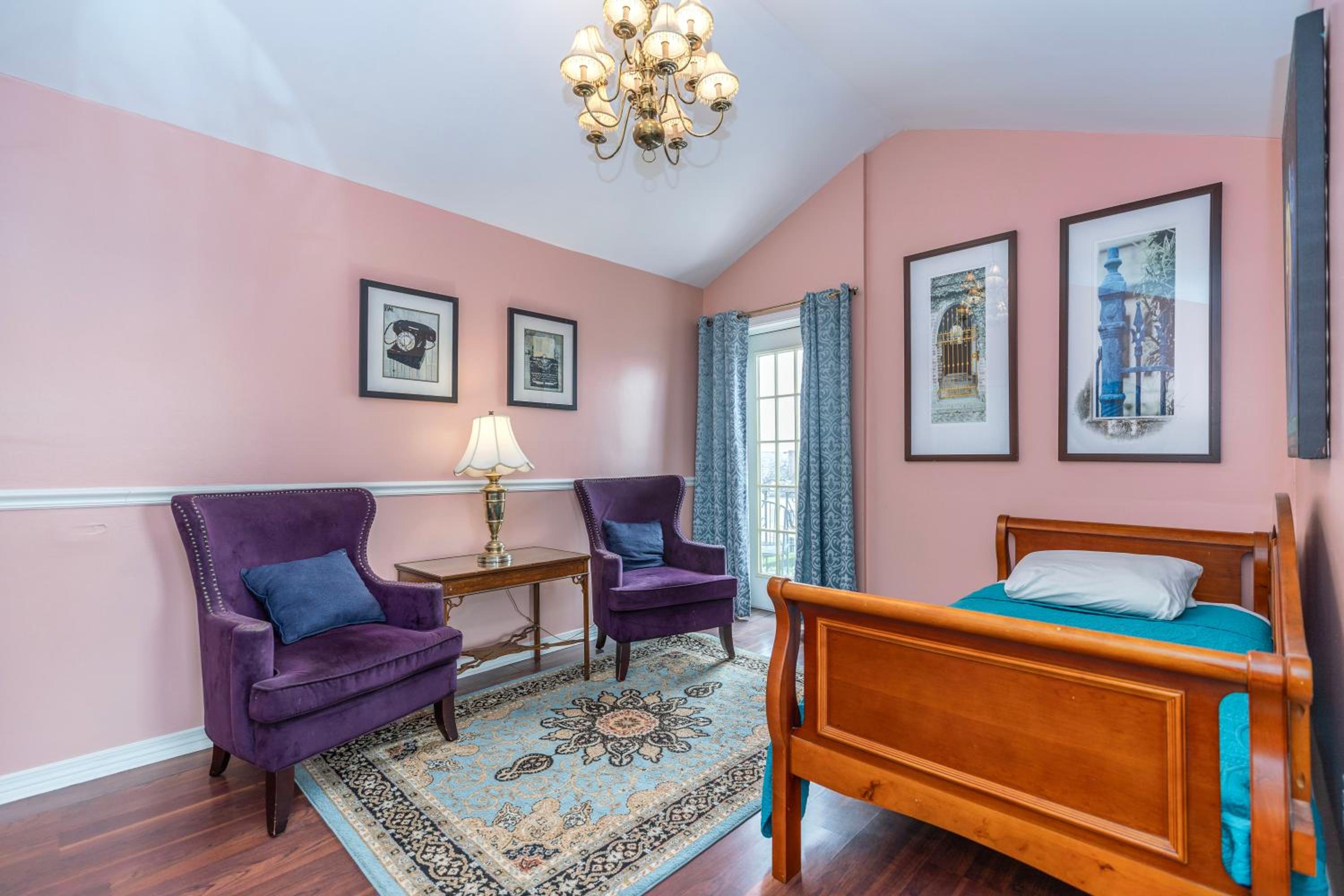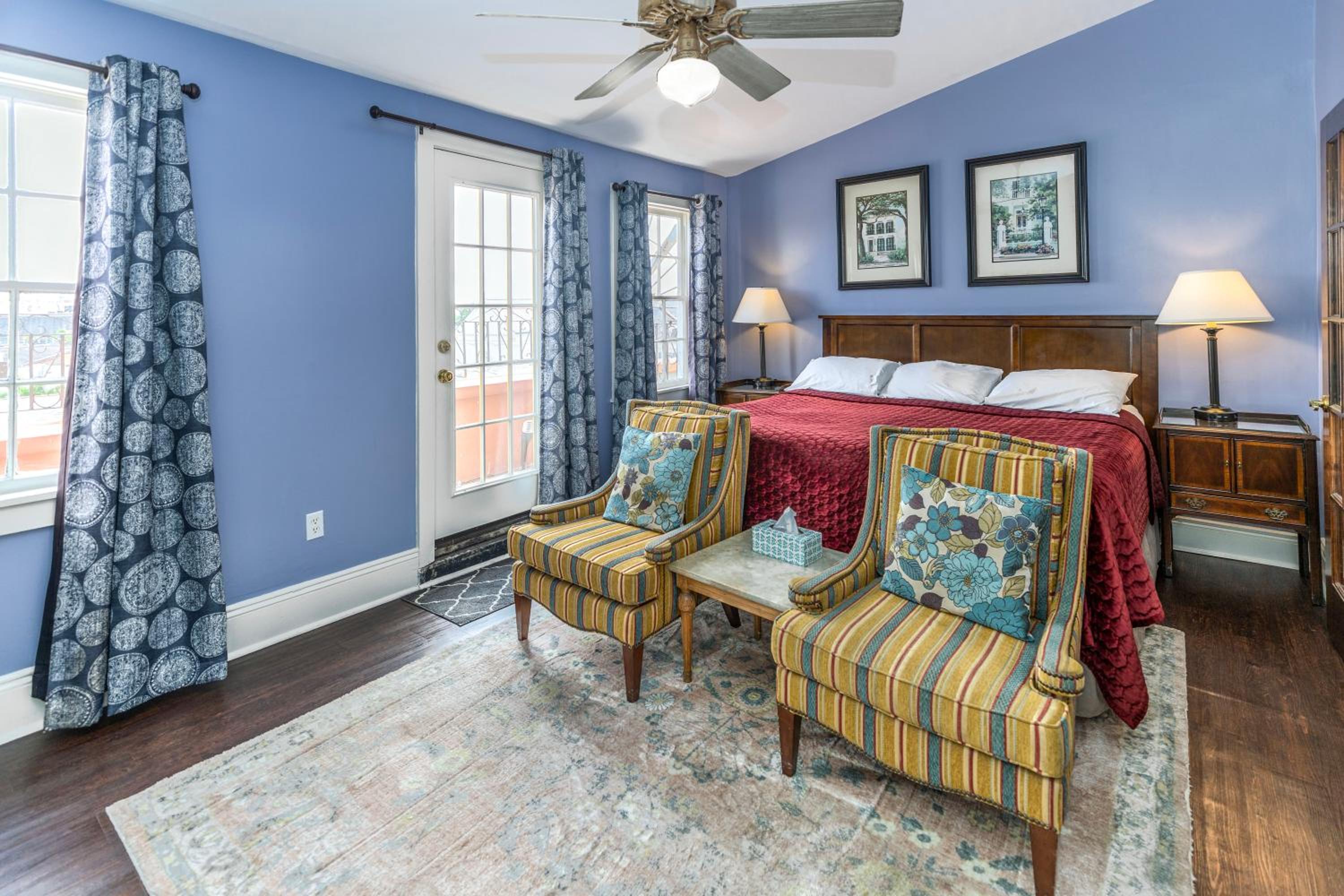 Historic Ambiance: Experience the essence of New Orleans with ironwork, chandeliers, and lavish bedding throughout the property, exuding classic charm.