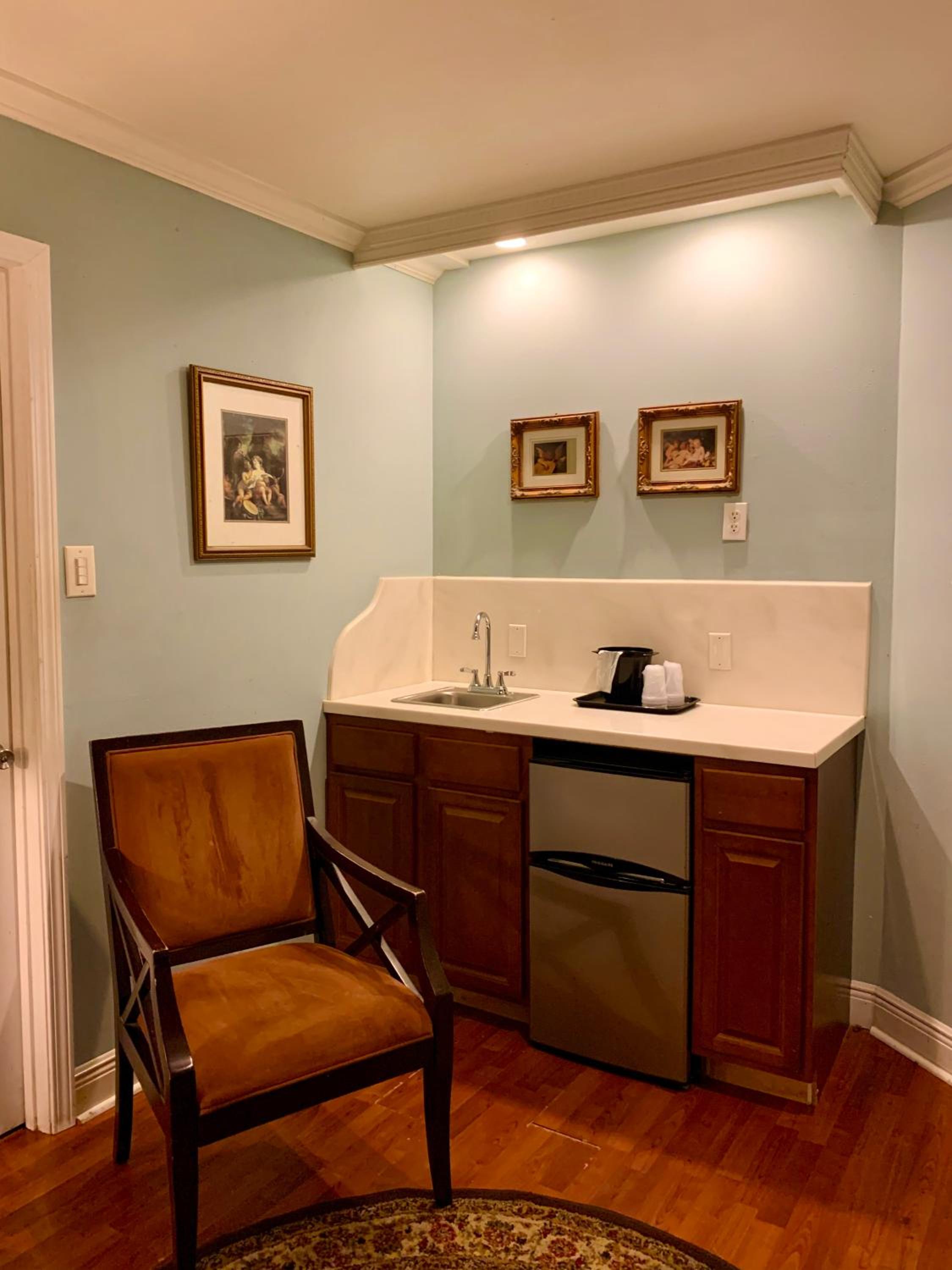 The location is perfect. This is one of a handful of locally owned small hotels in the French Quarter, and it reflects that care. The check in was easy and professional. The room was fine, maybe could use some new upholstery and maybe some touch ups on the furniture, but it was pretty and very comfortable.
