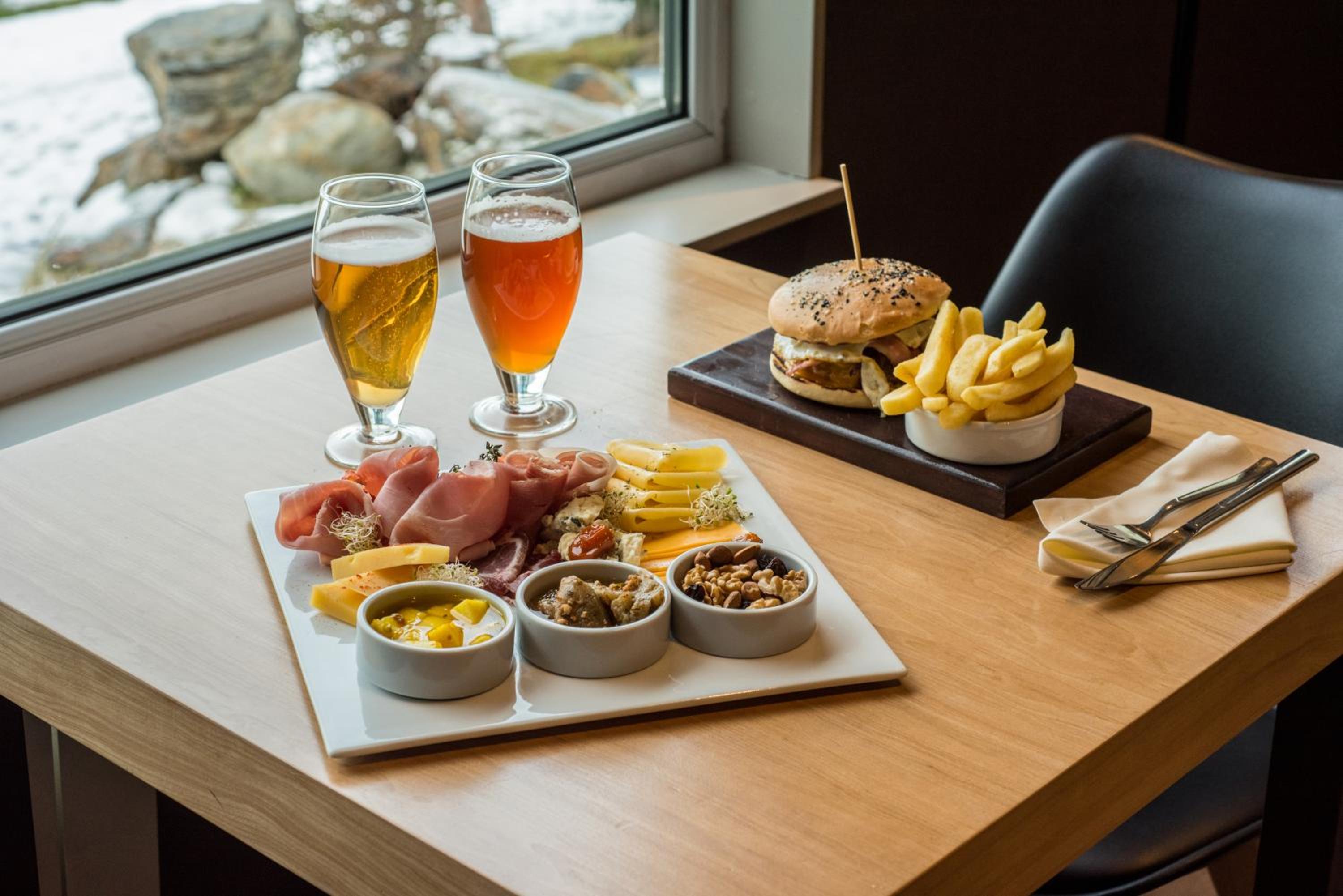 Indulge in gourmet flavors at the Orange restaurant while enjoying panoramic views of the mountains and lake. Start your day with a buffet breakfast featuring delicious Patagonian jams and treats, setting the tone for a culinary experience to remember.