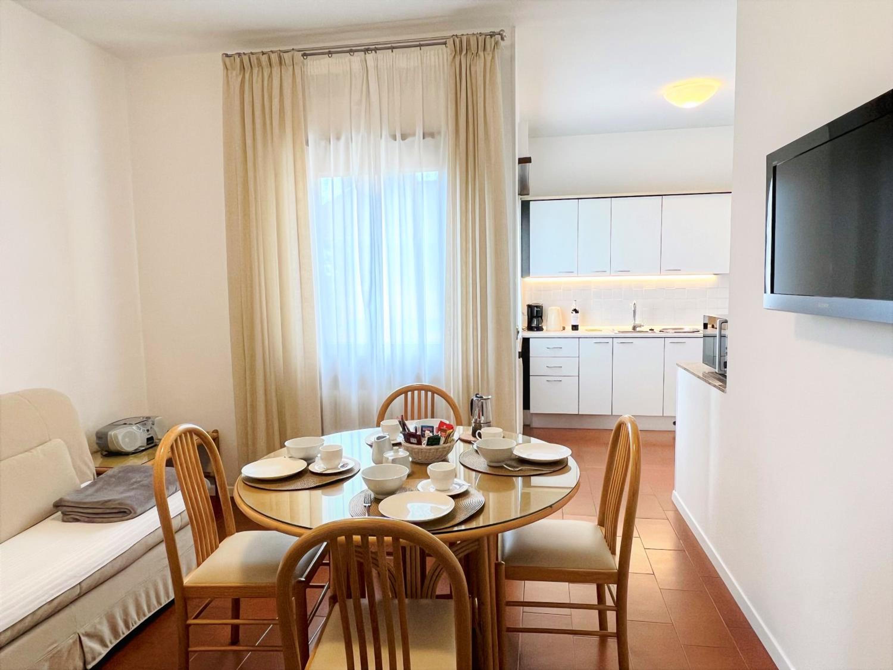 Great apartment overall, has small garden, parking (extra cost), super close to the lake and to all restaurants and shops. Host is nice and helpful
