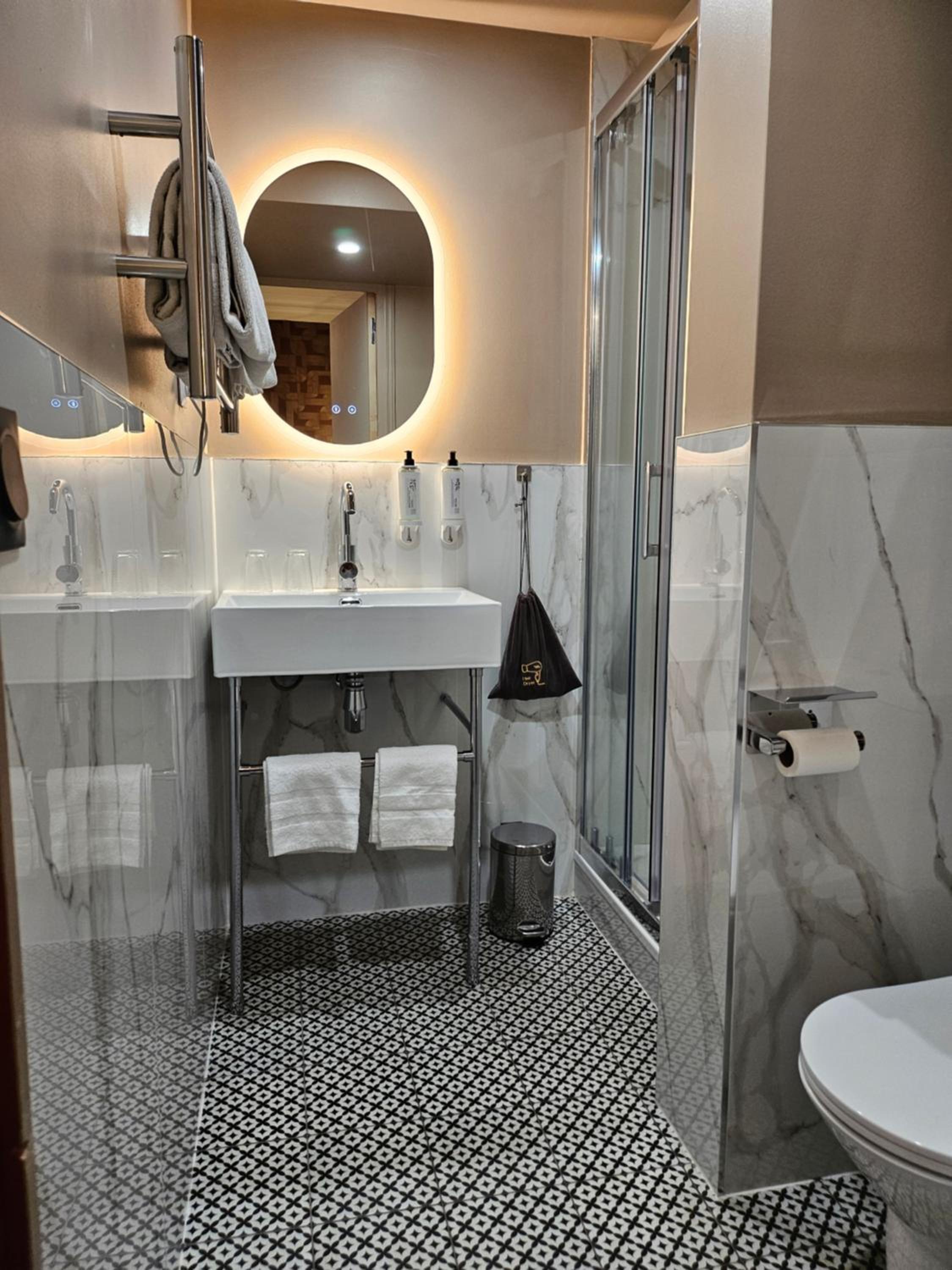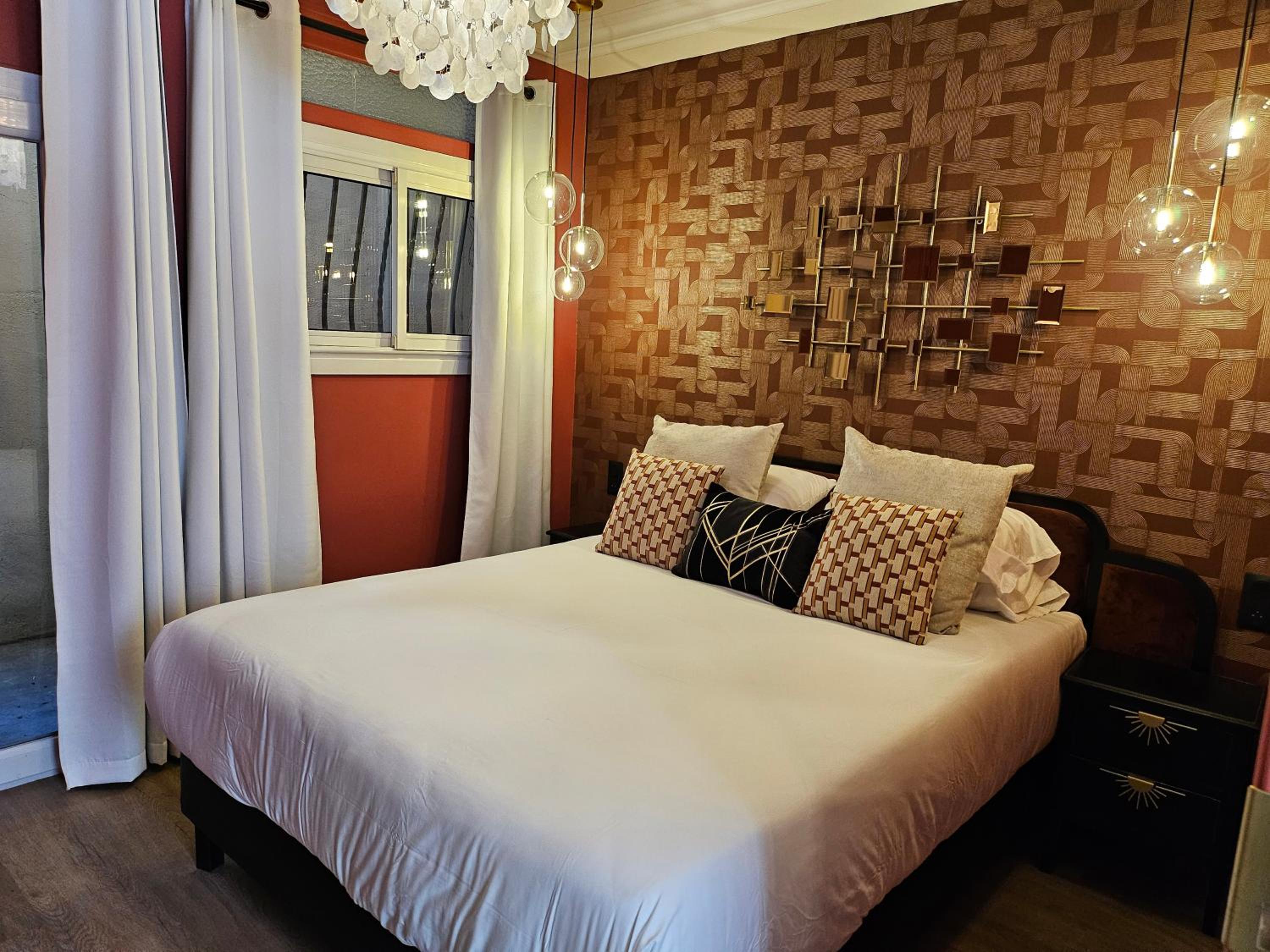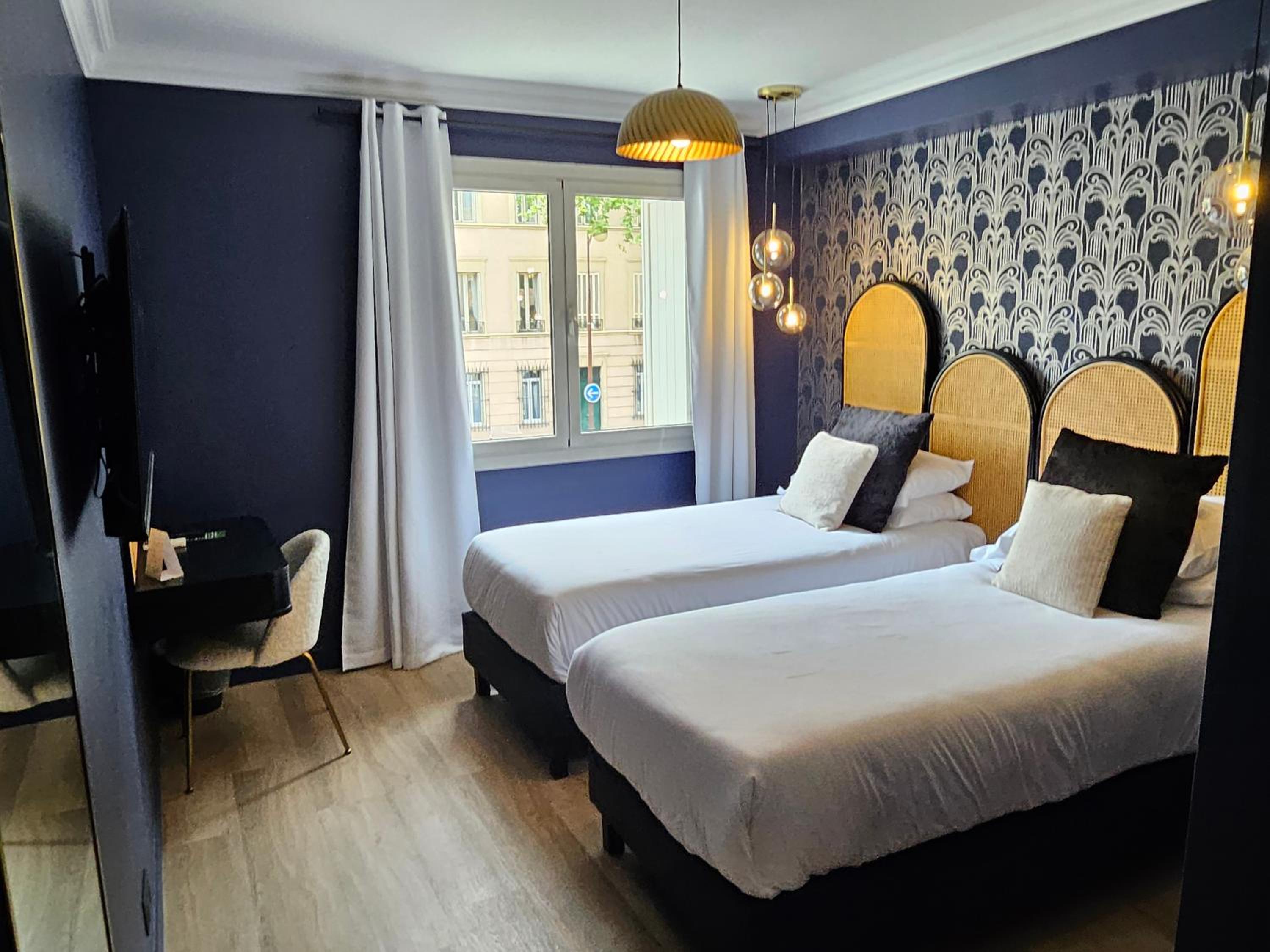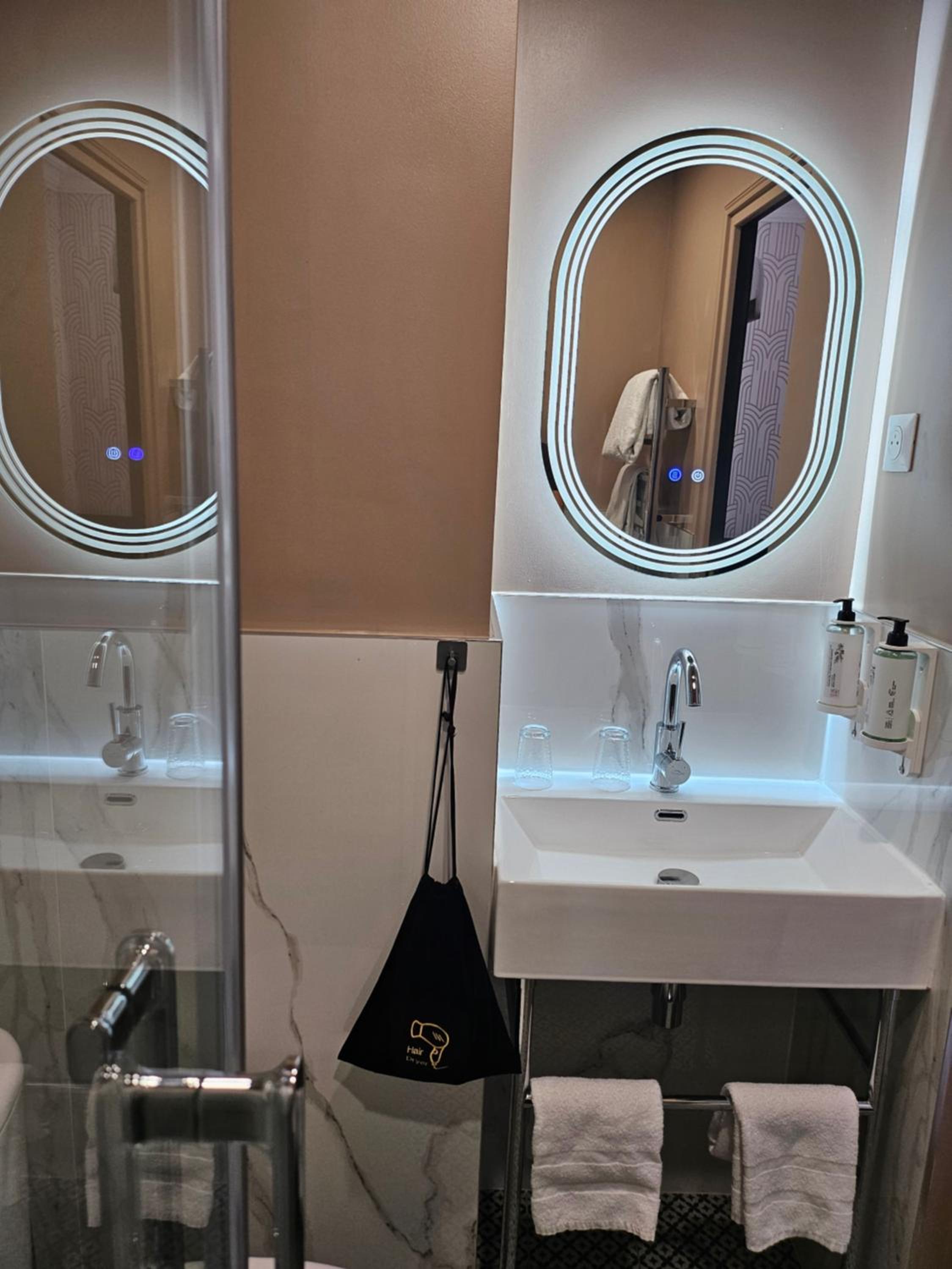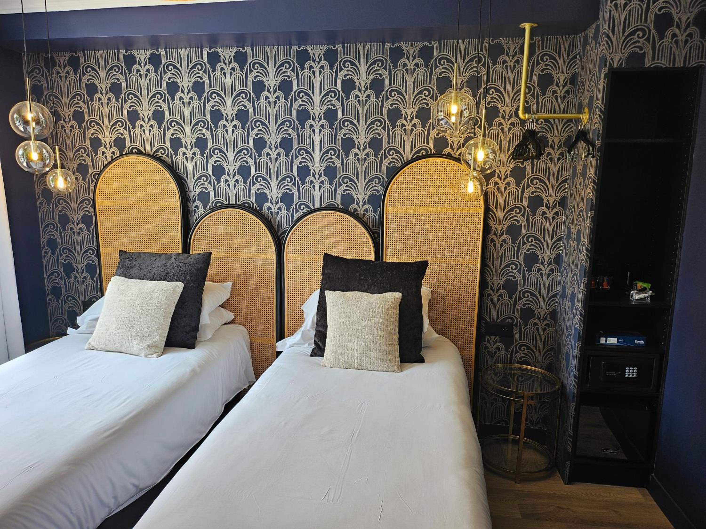 deco agréable et bonne machine à café style nespresso à disposition dans la chambre. très jolie salle d’eau (étroite..faut pas être large sinon on passe pas de face). bonne literie et chambre propre. assez silencieux et j’ai passé une bonne nuit.