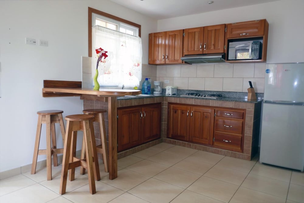 Bring bug spray, the sand flies/fleas whatever will eat you alive. Air conditioning wasn't working in one of the bedrooms, so it was a miserable first night but the next night the owner allowed us to switch to a different room with air conditioning. Fridge leaks water on the floor so be careful walking in the kitchen. It was convenient and mostly clean, not sure if we'd stay again or try to find somewhere better next time we're in Bocas.