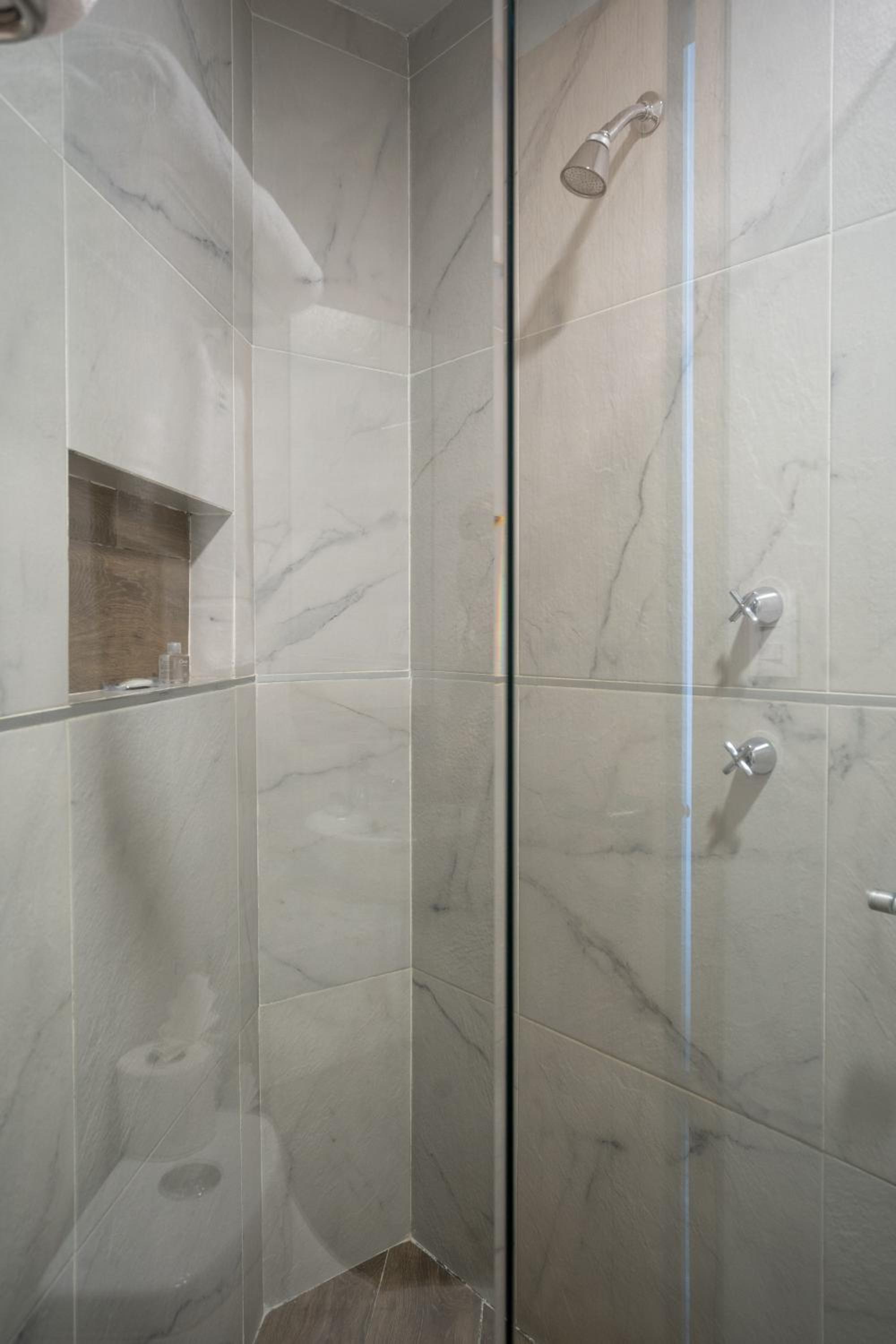 the ledges built in at the door and the bathroom door and the shower were very much tripping hazards
