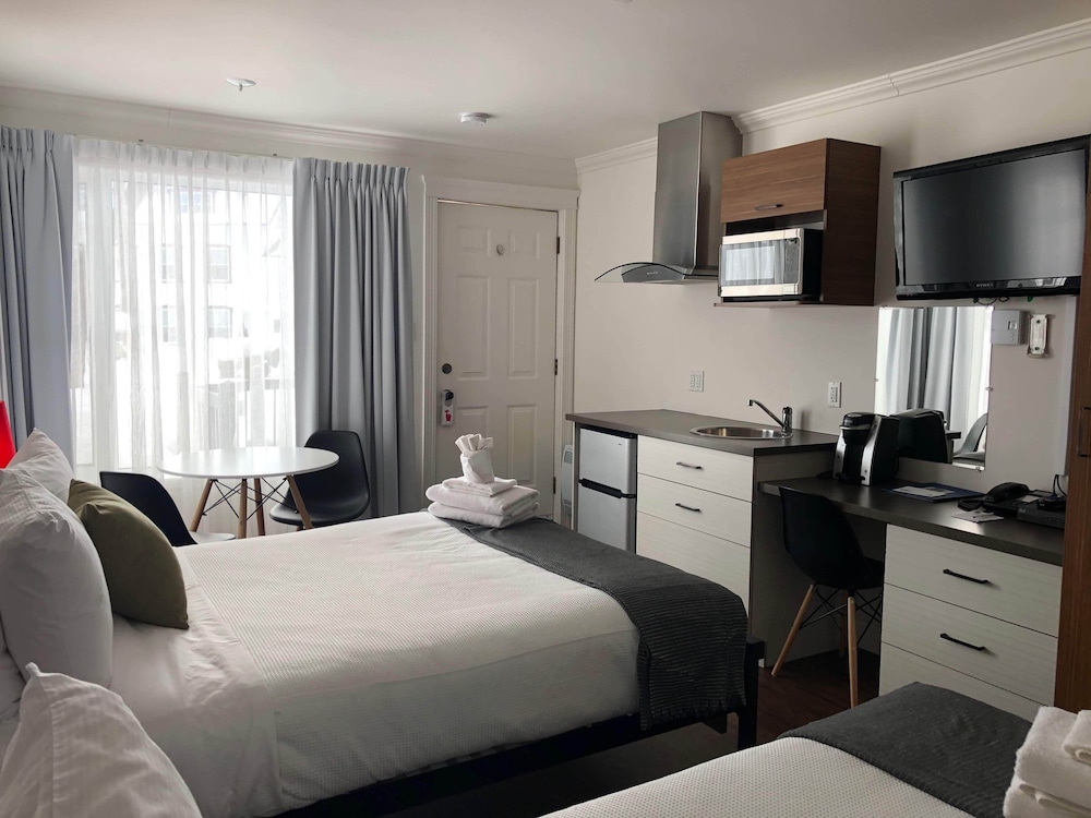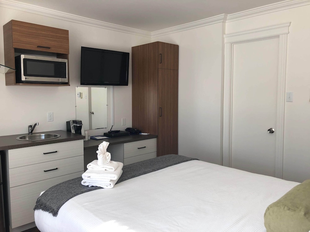La salle de bain avait de la moisissure, très datée également, le tapis dans la chambre était sale, bain mais aucun bouchon, l'employé à la réception était antipathique, il n'a fourni aucune explication par rapport aux installations, aucun moyen de prendre possession de la chambre plus tôt et nous avons été réveillée par le service de ménage (entre autre la balayeuse dans les couloirs) avant 9h am. La machine à café n'a pas été nettoyé depuis longtemps. De plus les prix sont élevés pour la région.