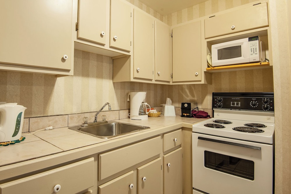 We had no hot water the first night, and when I spoke to the lady at front desk she just kept telling me that her hot water worked fine. We had a room with a full kitchen, and only one burner worked on the stove which was frustrating. When I brought it up she just dismissed it. There’s also no restaurant as advertised, and no tennis courts.