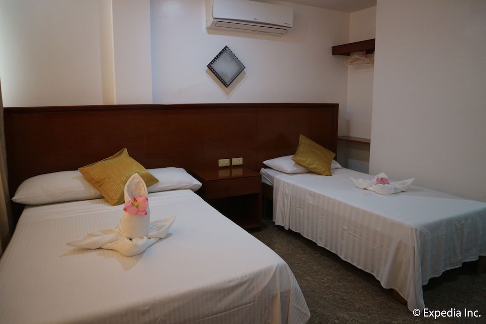 This hotel is steps away from D-mall, the busy walking street between the main strip and the beach. There are lots of cool bars along the beach with live music and fire performers. Conveniently located at station2. The hotel is showing it's age but the staff are friendly. My stay included breakfast in the morning, so that was nice. WiFi is sketchy at almost all the hotels in the Philippines. Overall a pleasant hotel to stay at.