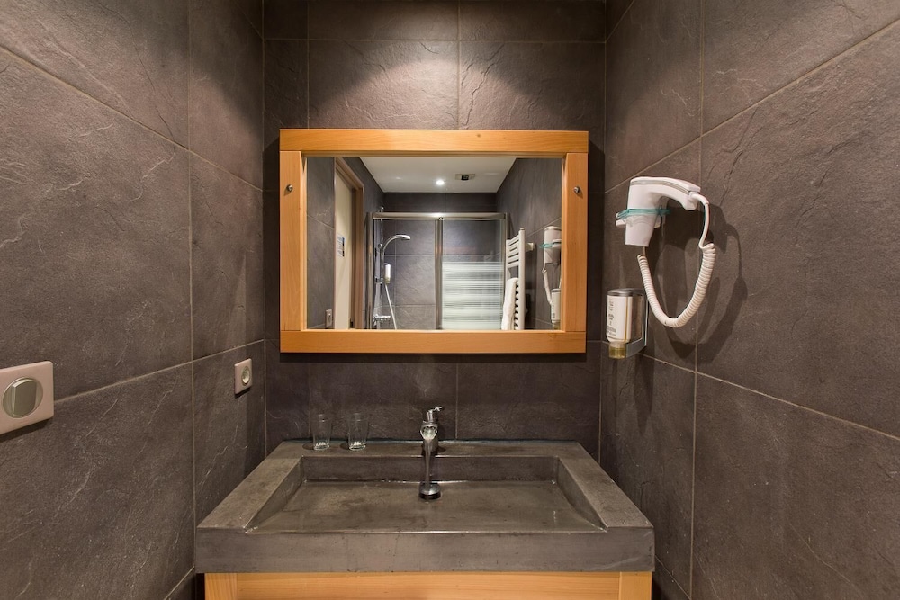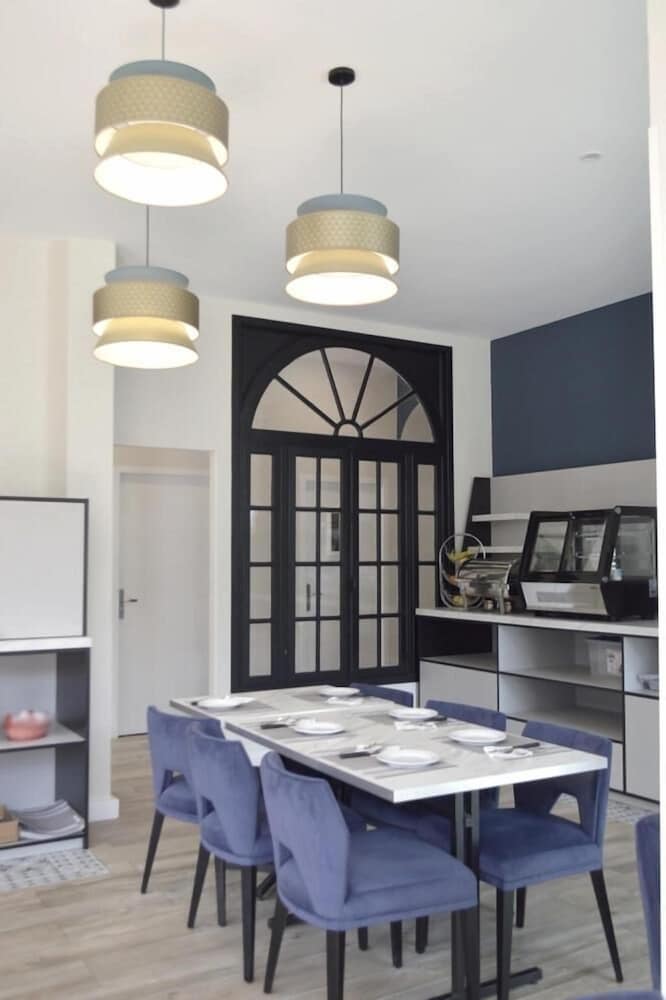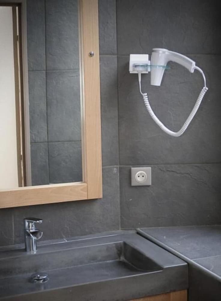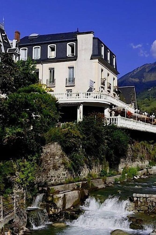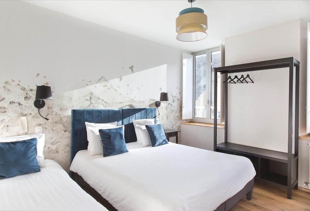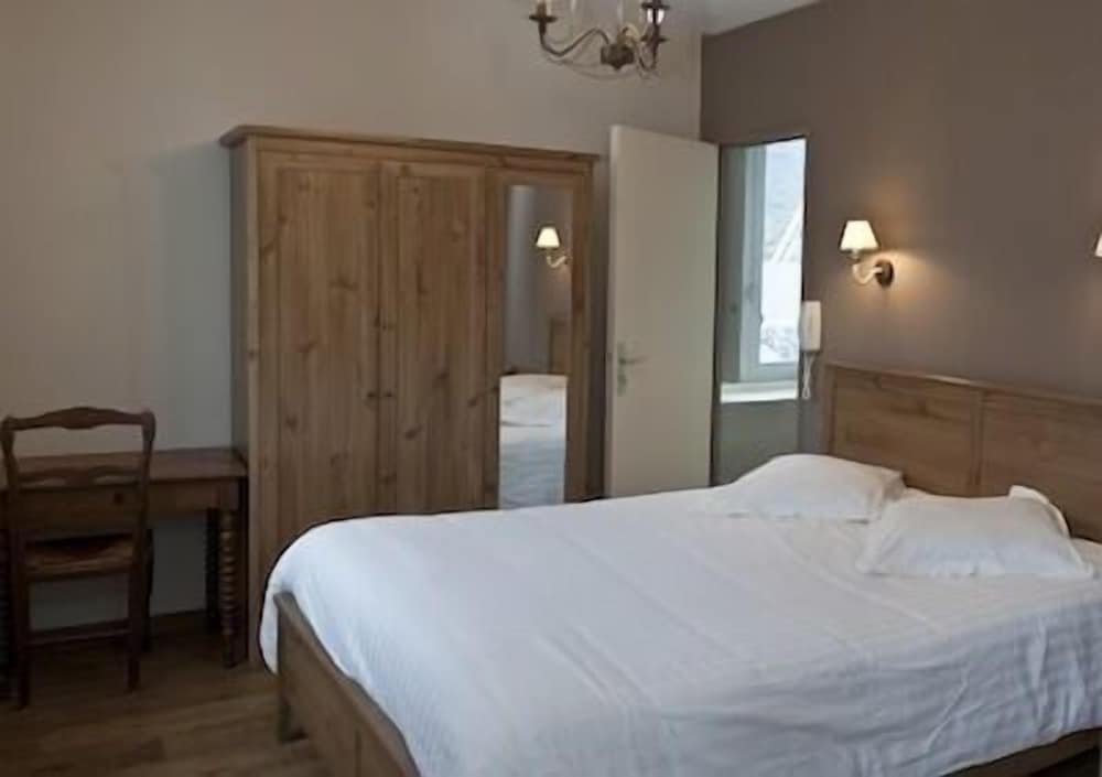 La limpieza del lugar, el emplazamiento en el centro del pueblo pegado al río.Nos alojamos con nuestra mascota .Desde la terraza del hotel se ven buenas vistas. Aunque cierran la cocina a las 21h nos sirvieron unas bebidas e infusiones más tarde cuando llegamos.Fueron muy amables tanto camareros como recepción y aunque nuestro nivel de francés era muy básico, hacían por hablarnos en español. El desayuno por la mañana eran 9'50€ y es buffet con repostería,fruta,maquina de café,huevos pasados por agua...etc. La habitación tenía la cama muy grande y cómoda y teníamos un pequeño balcón.Teníamos espacio suficiente para nuestro perro de tamaño mediano.