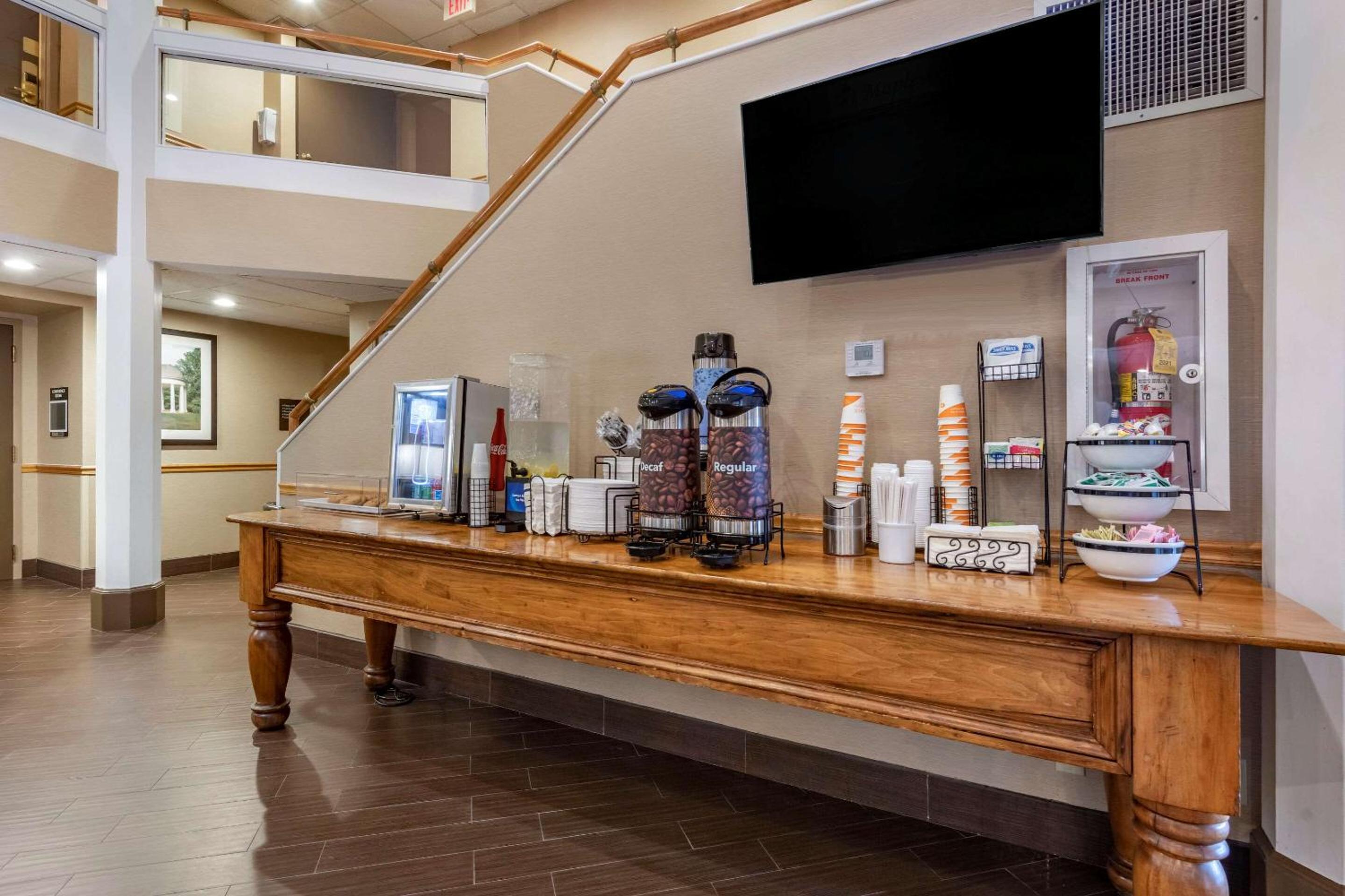 Love the 24hour coffee bar with cookies; plenty of parking for our trucks and snowmobile trailers; breakfast was a greatbonus!