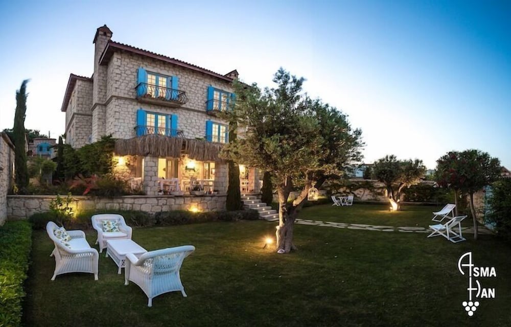 Alma han hotel дизайнерский бутик отель в типичной вилле Алачати на тихой улице около центра старого города. Здесь всего около 5-6 номеров. В отеле накрывают традиционный турецкий завтрак в уютном саду, за которым можно незаметно прочиллить до 12) Рядом все бары, кафе, рестораны. Рекомендую Ferdi baba в Марине Алачати или Чегме, живые концерты в Korto bar с суши и коктейлями.