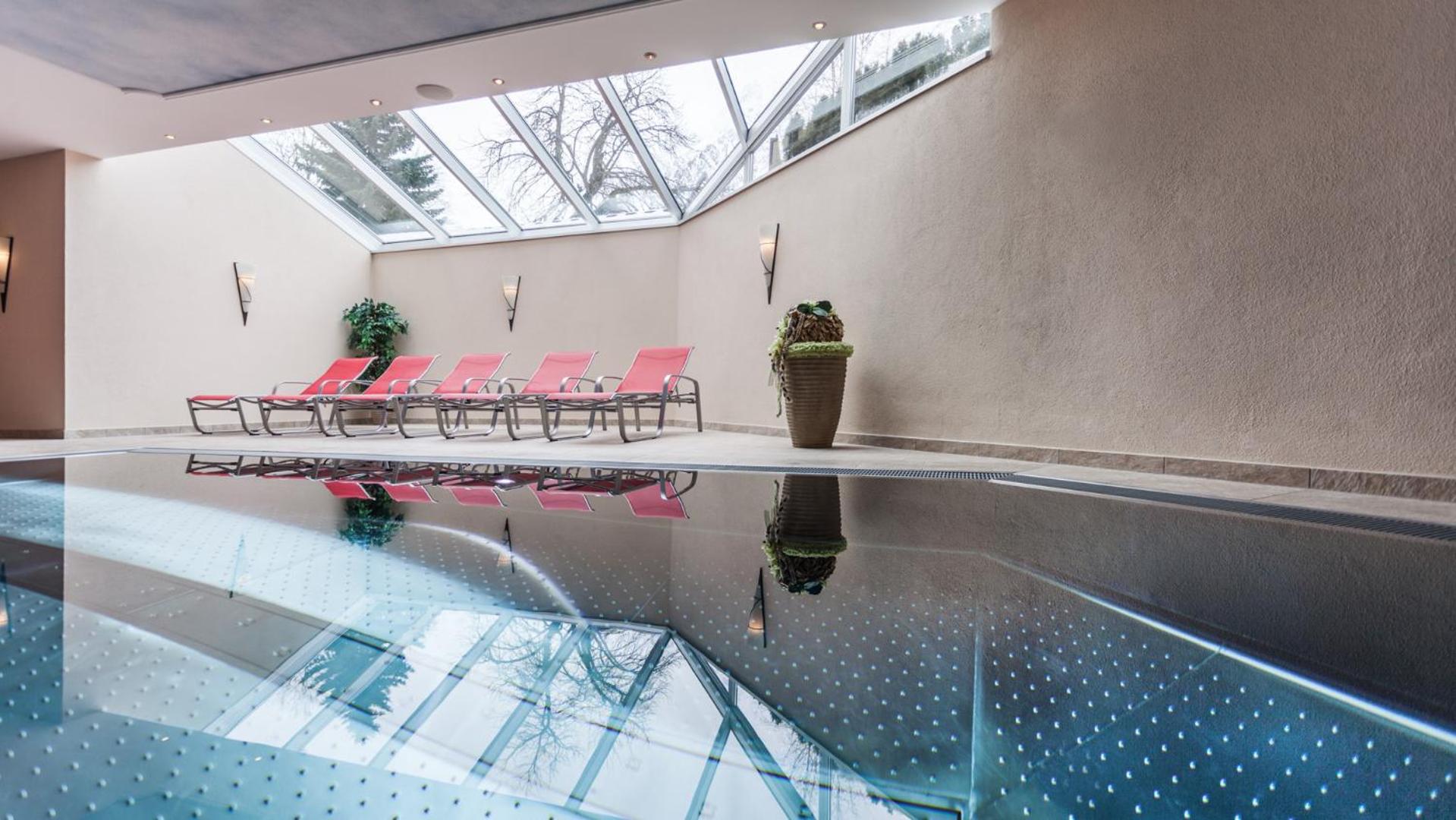 Indulge in the Panorama wellness area featuring an indoor swimming pool, steam bath, solarium, and sauna. Pamper yourself and unwind after a day of activities.