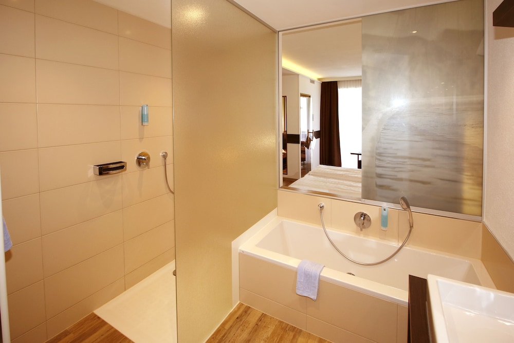 Sehr schöne, große und modern eingerichtete Suite mit Bergblick. Frühstück sehr vielfältig und schmackhaft, der Service war sehr gut, auf individuelle Wünsche wird eingegangen.