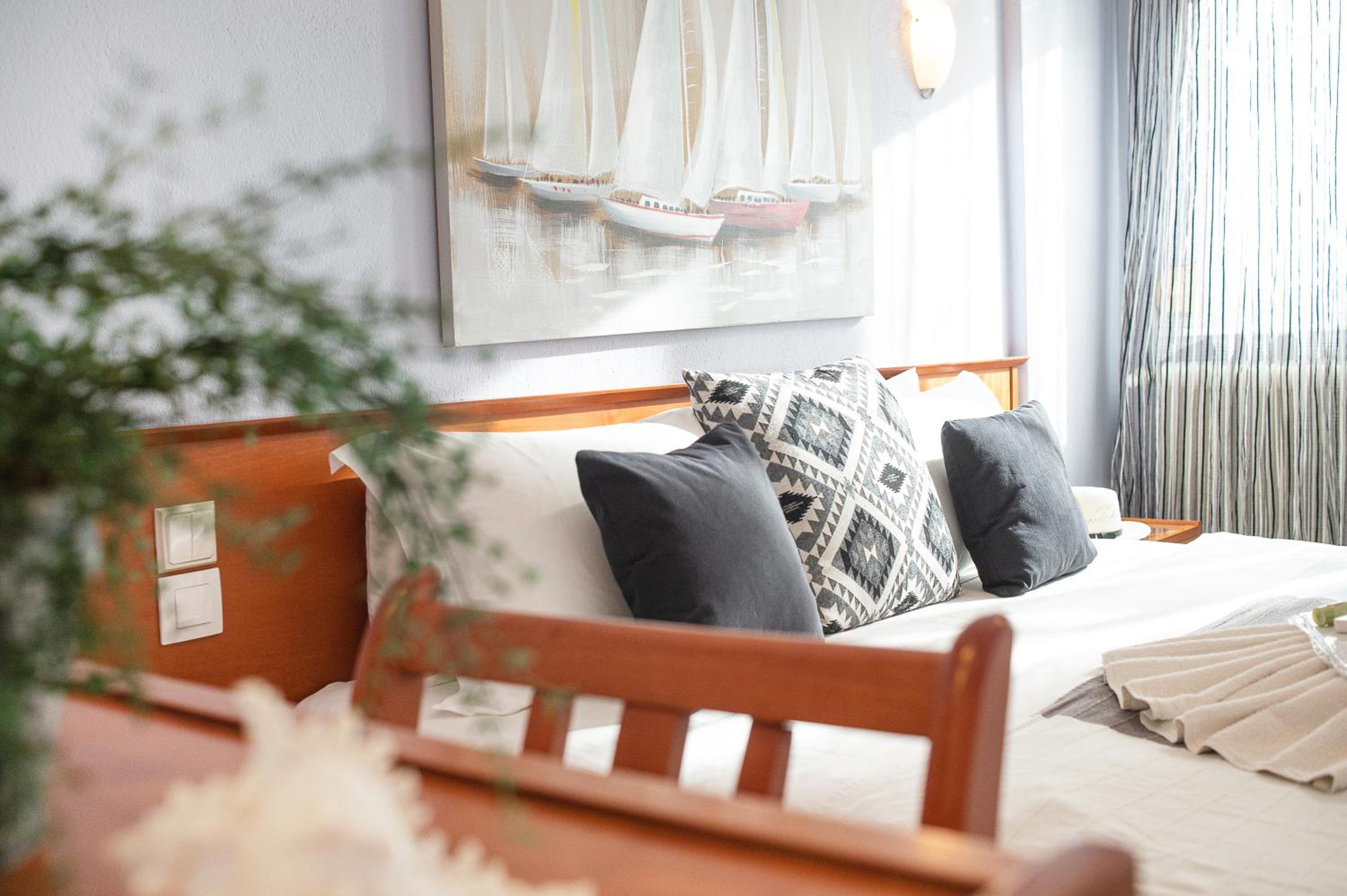 Indulge in the breathtaking vistas of the garden, mountains, or Thermaic Gulf from your room at Hotel Pithari. The charming wooden furnishings and modern amenities ensure a comfortable stay.