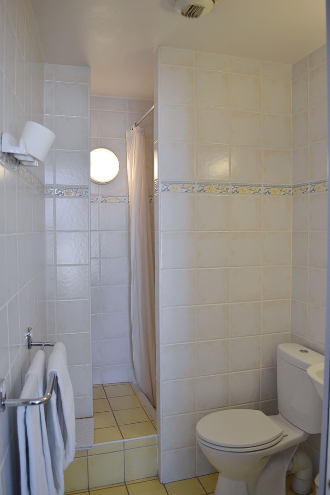 An older two star hotel in the heart of old town Antibes. Small room had AC which was needed. FYI: the shower was a big step up from the bathroom floor and quite tight. Large people would have an uncomfortable experience getting into the shower.