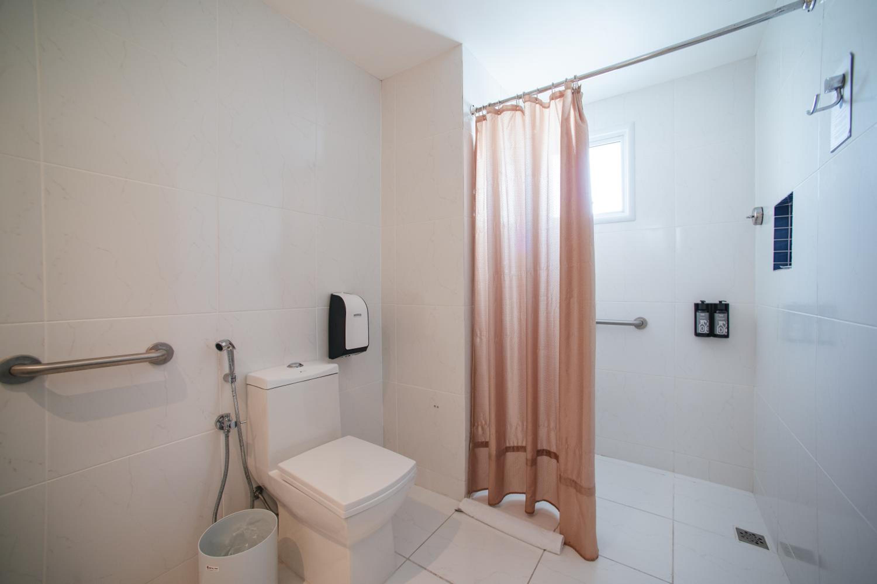 Banheiro com cheiro de urina, desde que abrimos a primeira vez, acredito que vinha do esgoto que ficava ao lado do vaso. Além de ser apertado o quarto é o banheiro. Deveria ser um quarto para três pessoas mas mal cabiam duas.