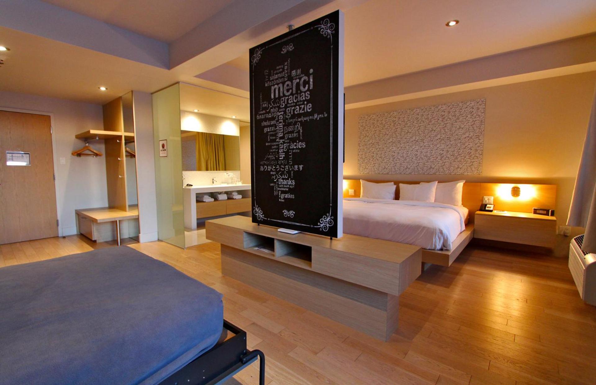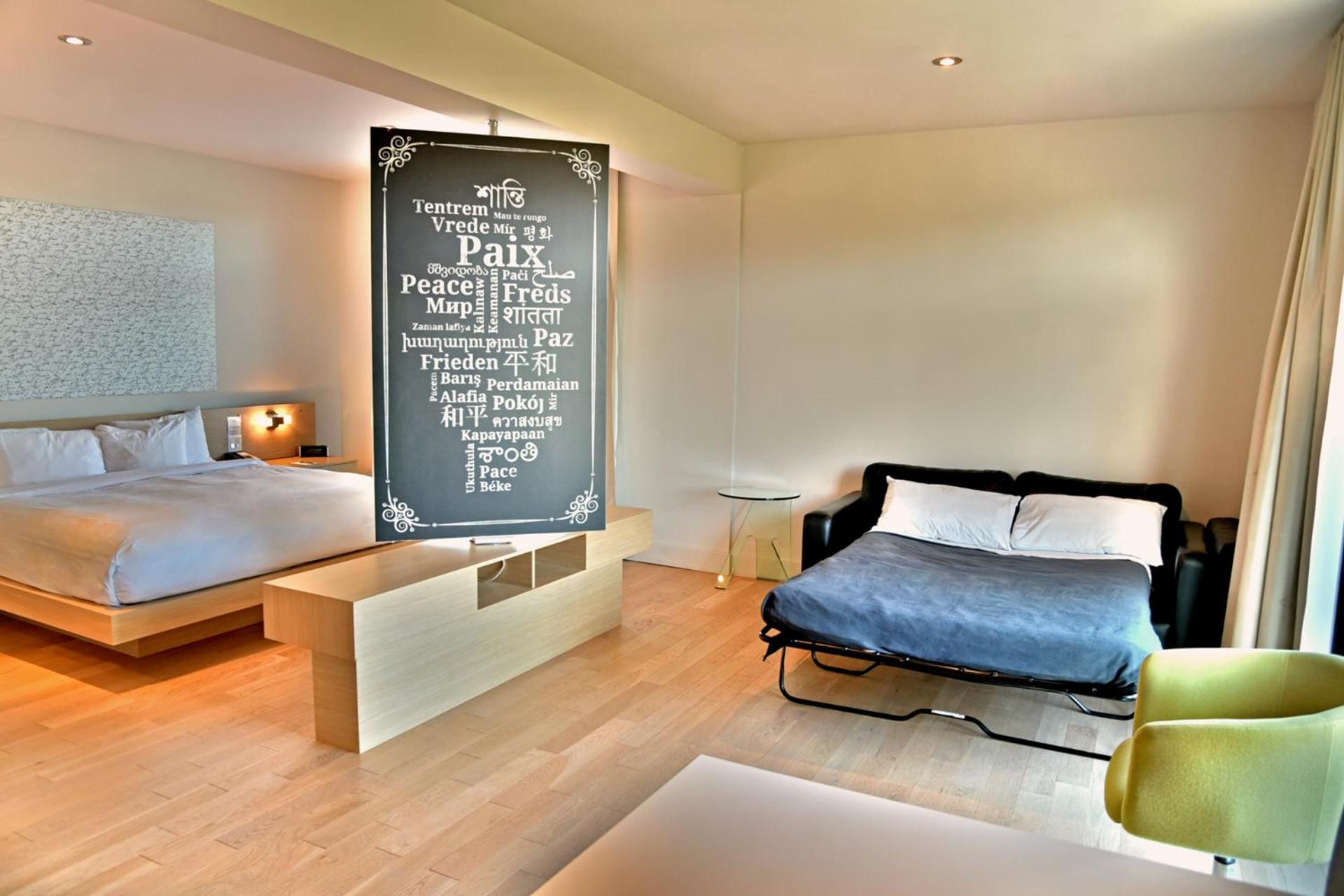 Weird. Just... Weird. Cold to look at, IKEA-like, curtains to separate bathroom which was odd.