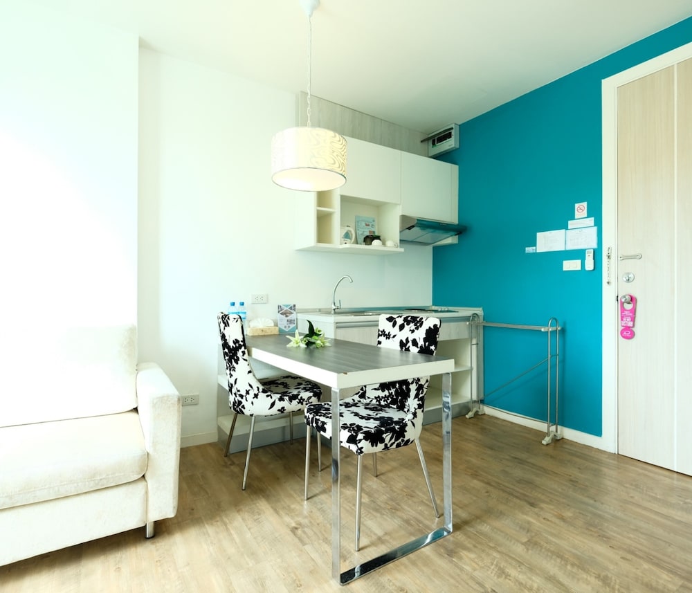ห้องพักสไตล์คอนโด แยกห้อง ห้องรับแขก มีที่เตรียมอาหาร