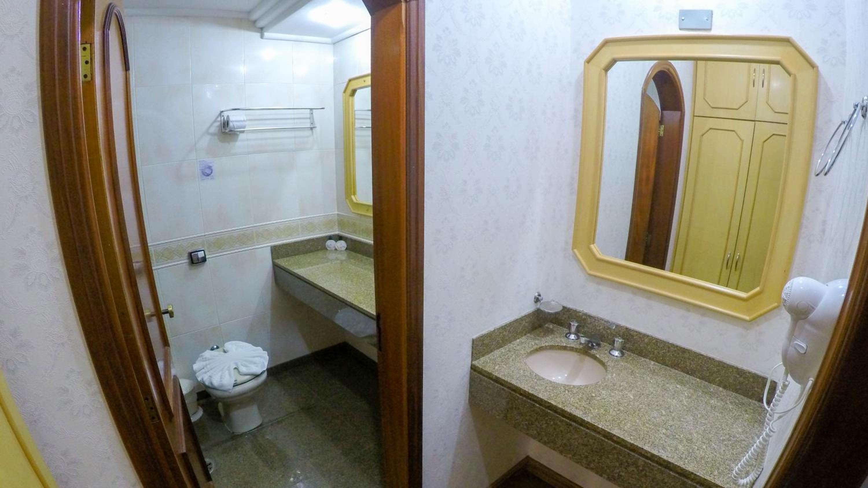 Hotel em péssimo estado de conservação. A suíte em que ficamos, com dois quartos, apresentava forte cheiro de mofo. No banheiro não havia janela, também tinha vazamento na pia e atrás do vaso sanitário, deixando o chão constantemente enxarcados o qual precisávamos secar com toalhas ao acordar.