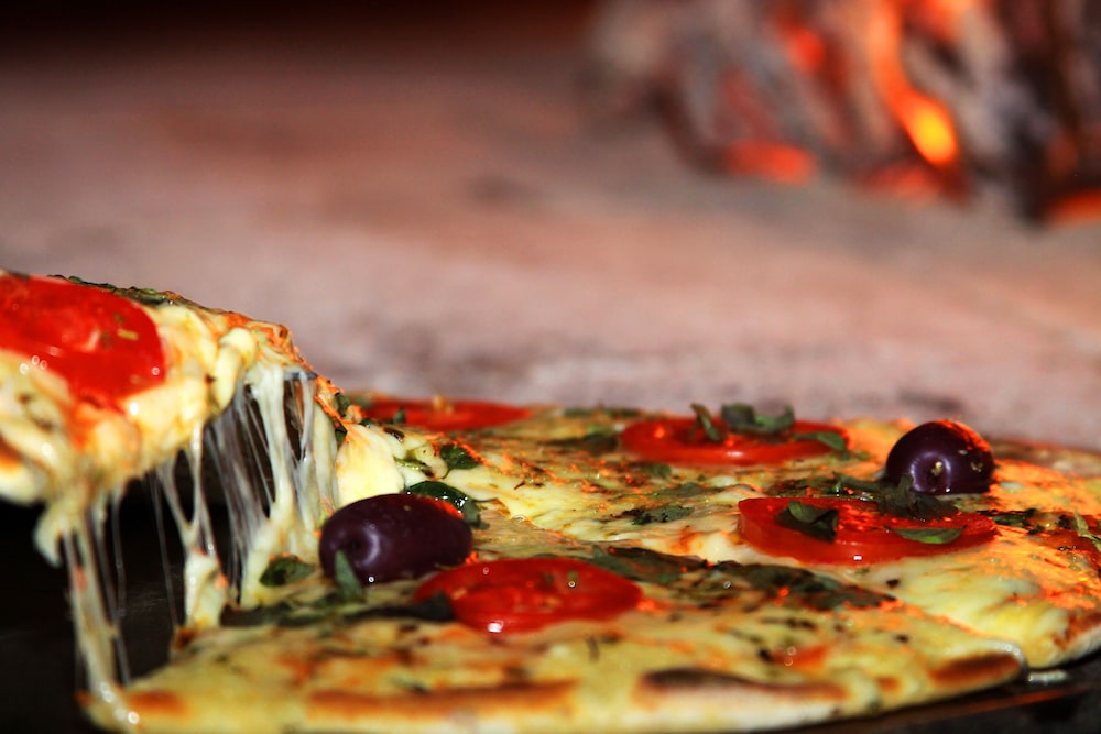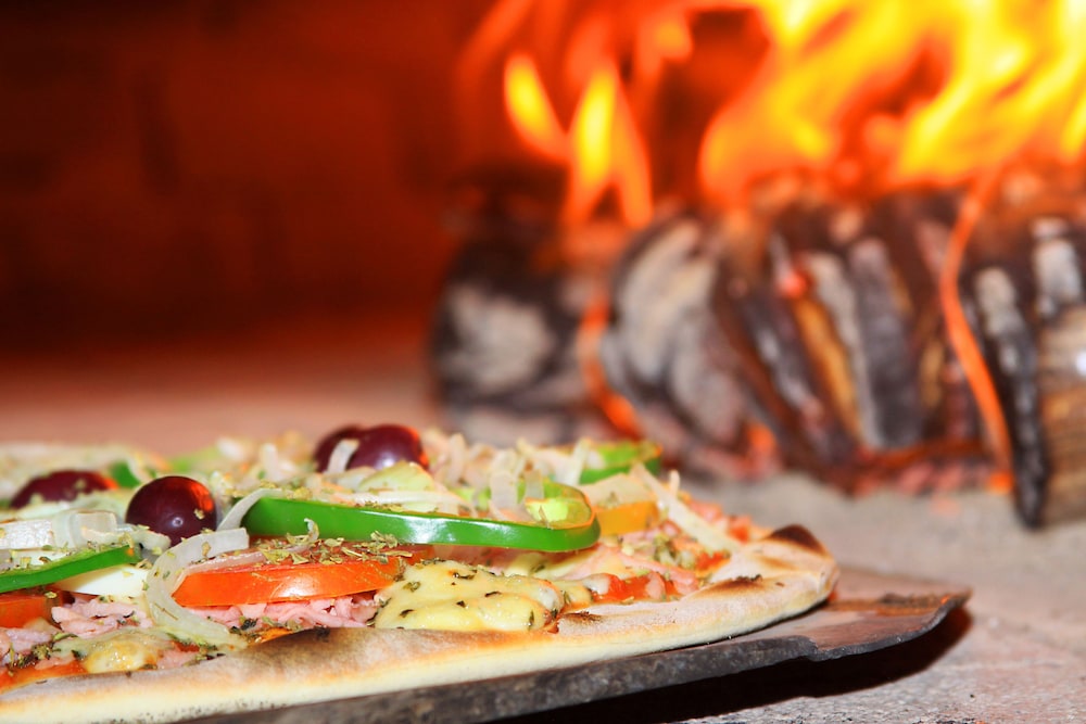 sem lojas e restaurantes ao redor. ficamos limitados ao restaurante do hotel. Muito bom, mas a parte da pizza, bem fraco. Apesar de terem um forno a lenha enorme, a pizza era muito ruim.