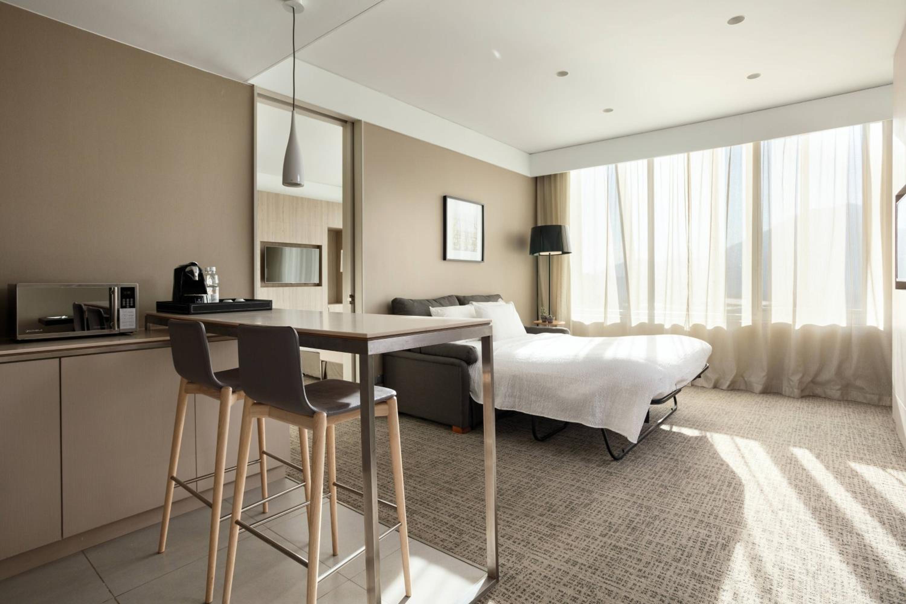 Each room at Courtyard by Marriott Santiago Las Condes exudes comfort and elegance. From air-conditioning and a 42" LCD TV to a minibar and a coffee machine, every amenity is designed for a luxurious stay. The Suite offers a spacious seating area and breathtaking views of the Andes Mountains.