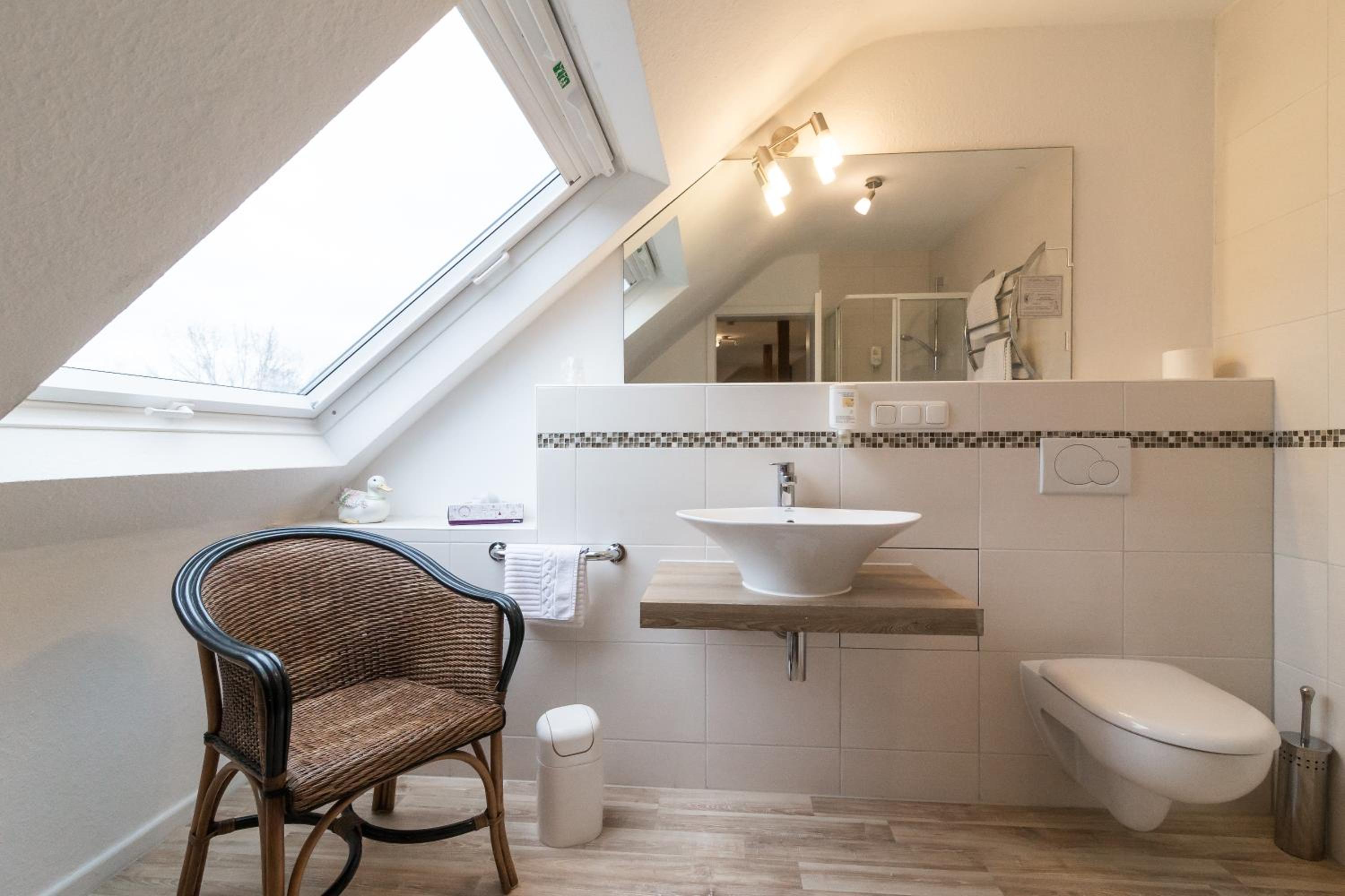 Großzügiges Apartment , modernes Bad, Wasserkocher, Tisch , Schreibtisch.