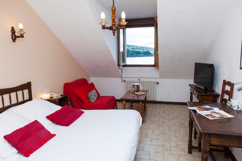 Rapport qualité/prix correct pour cet établissement familial au coeur de la campagne jurassienne. Le personnel est très agréable et très bon accueil. Le restaurant avec ses plats faits maison (glaces incluses!!) est à recommander, même si les prix sont vraiment élevés. En même temps on n'a pas trop envie de reprendre la voiture le soir pour aller chercher un restaurant dans la campagne alentour. Surtout après un long moment détente dans la piscine intérieure, le hammam,le sauna et le super jacuzzi avec de l'eau vraiment chaude. Tout y est propre dans ces espaces. Par contre, les chambres datent vraiment d'un autre âge (papier peint, carrelage, mobilier et luminaires comme chez grand-mère!). Les wc et salle de bain ont bien été rénovés mais il manque les systèmes d'aération (juste un gros trou vide)et de quoi accrocher les serviettes au mur. Quelques toiles d'araignées bien visibles dans 1 coin de la chambre. La Literie est correcte. La vue sur le lac est vraiment belle, surtout le soir. On ne peut que souhaiter que la rénovation en cours se poursuive car il y a du potentiel.