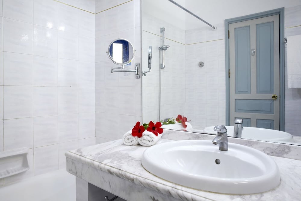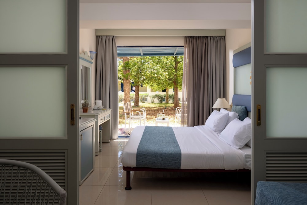 Pamper yourself with a visit to the spa and enjoy 2 outdoor swimming pools and a complimentary water park. All-inclusive Mediterranean cuisine dining with 2 restaurants and 3 bars/lounges. Stay connected with complimentary Wi-Fi and enjoy recreational amenities like outdoor tennis courts. Business center, event spaces, and concierge services available. Book now for a relaxing stay at Mare Blue Hotel near beautiful beaches and archaeological sites.