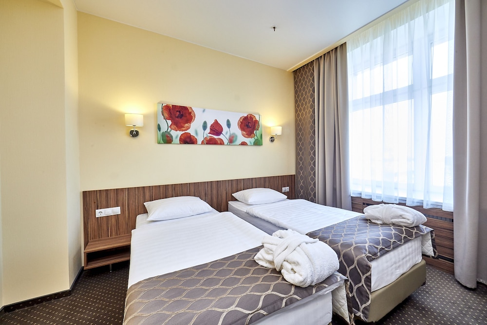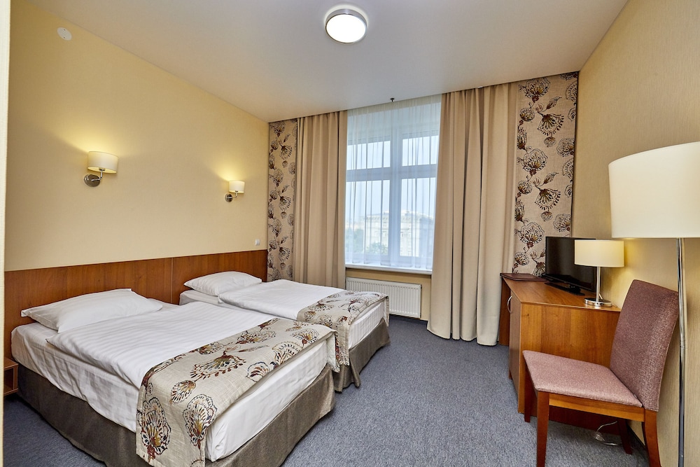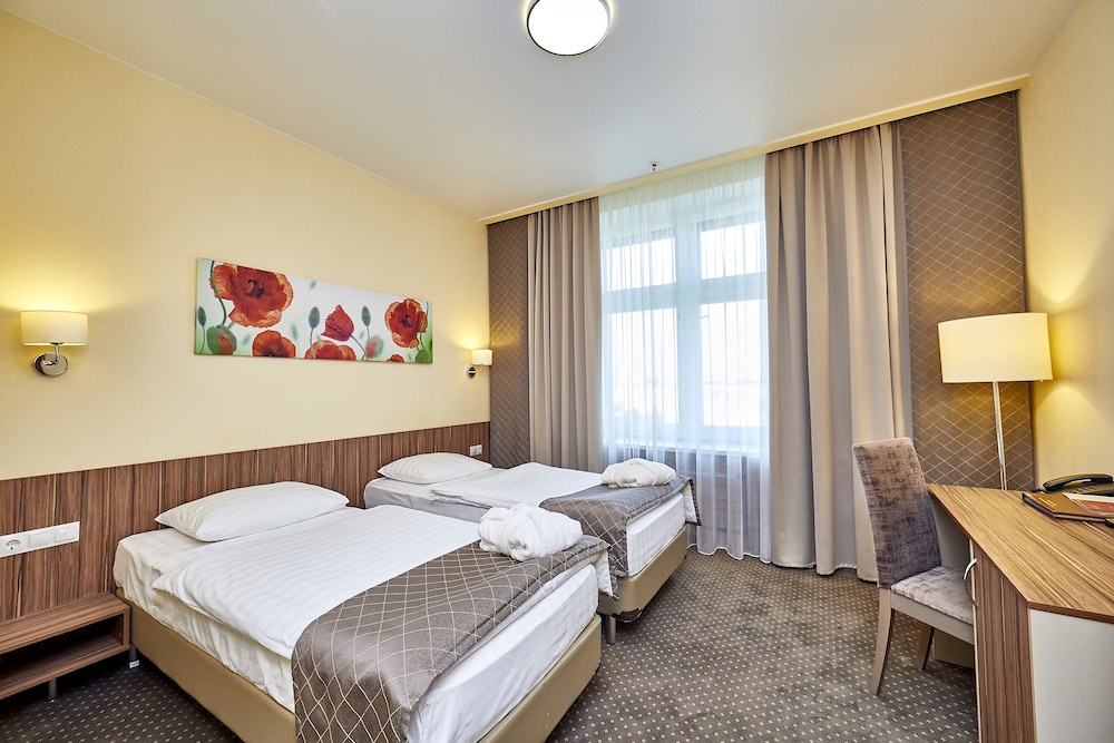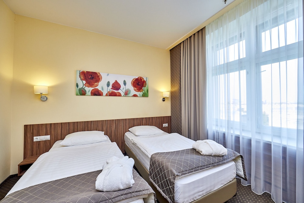 I stayed at this hotel since it was closer to St Petersburg International Economic Forum than most others and was on the main road to the Forum and Pulkovo Airport and still not far from downtown. All international chain hotels were priced 3-5 times their average cost so I didn’t have many choices within two days of arrival. Still I was surprised to discover that they don’t have air conditioning in the rooms which may be tough during the night when it’s 30 degrees Celsius outside. So my first night was terrible. I learned to cope by opening entry door and window at the same time which cooled the room down a bit so second night was OK. Room is extremely basic and tiny, get a single business room if you need a desk table. Breakfast is OK, with some good options but also relatively basic. I may be spoiled by 4-5 star hotels so if you pay a regular price (not 200$+ as I did during the Forum) and the weather is not too hot it may be OK to stay there.