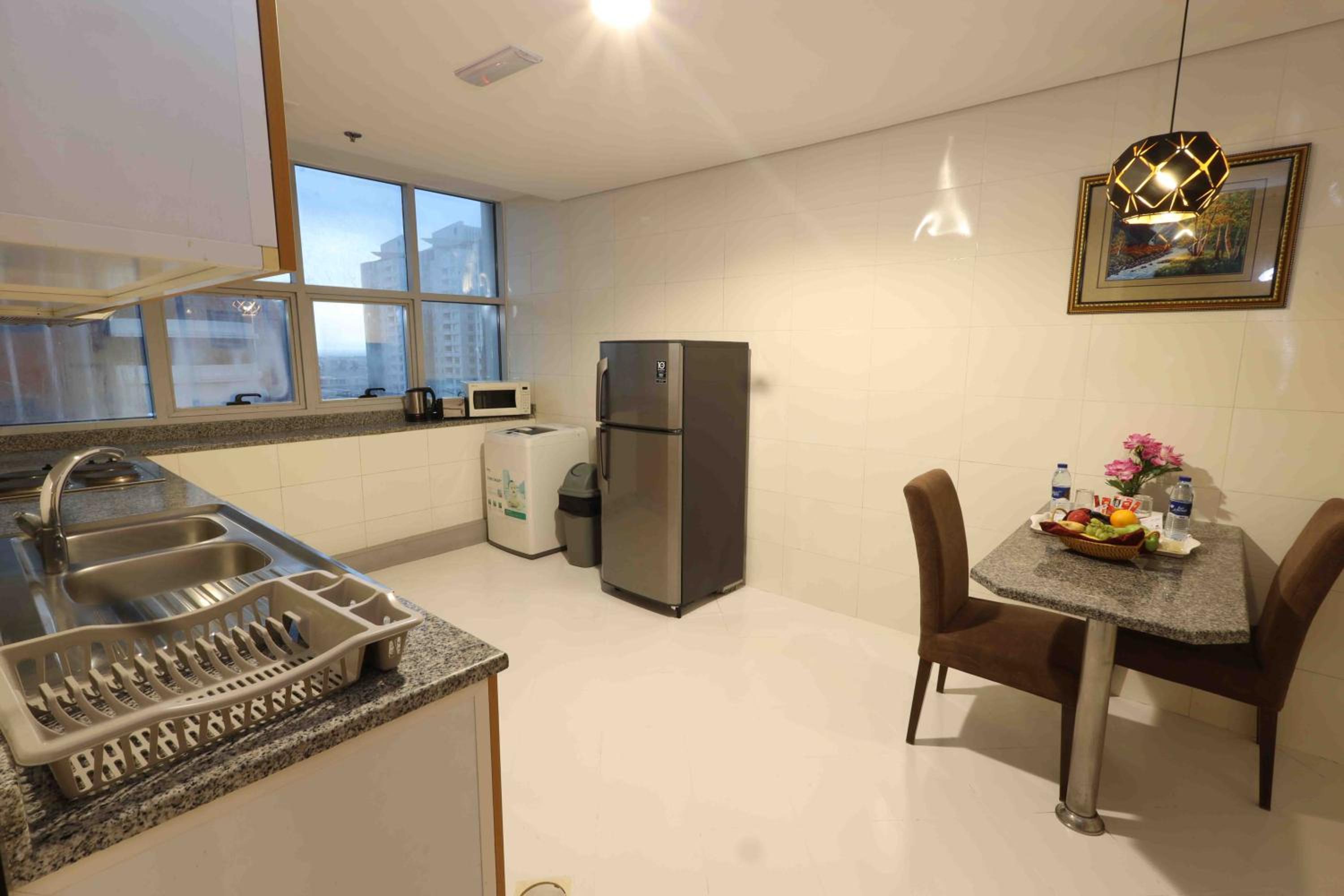 Each room is thoughtfully designed with modern furnishings, equipped with satellite TV, a workspace, and essential amenities. Our suites feature living areas and kitchens, perfect for a refreshing stay.