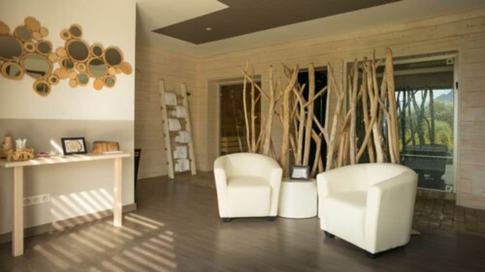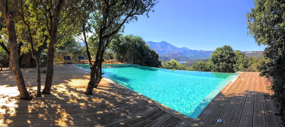 Nous avons passé un séjour génial ! L’extérieur est magnifique! La chambre très spacieuse avec une décoration raffinée, ainsi que la salle de bain. Sans oublier la Terrasse, la vue sur les montagnes et le petit jardin ! La piscine à débordement, un havre de tranquillité ! Le jacuzzi, un endroit magnifique ! Le personnel très à l’écoute. Tout étais parfait !!