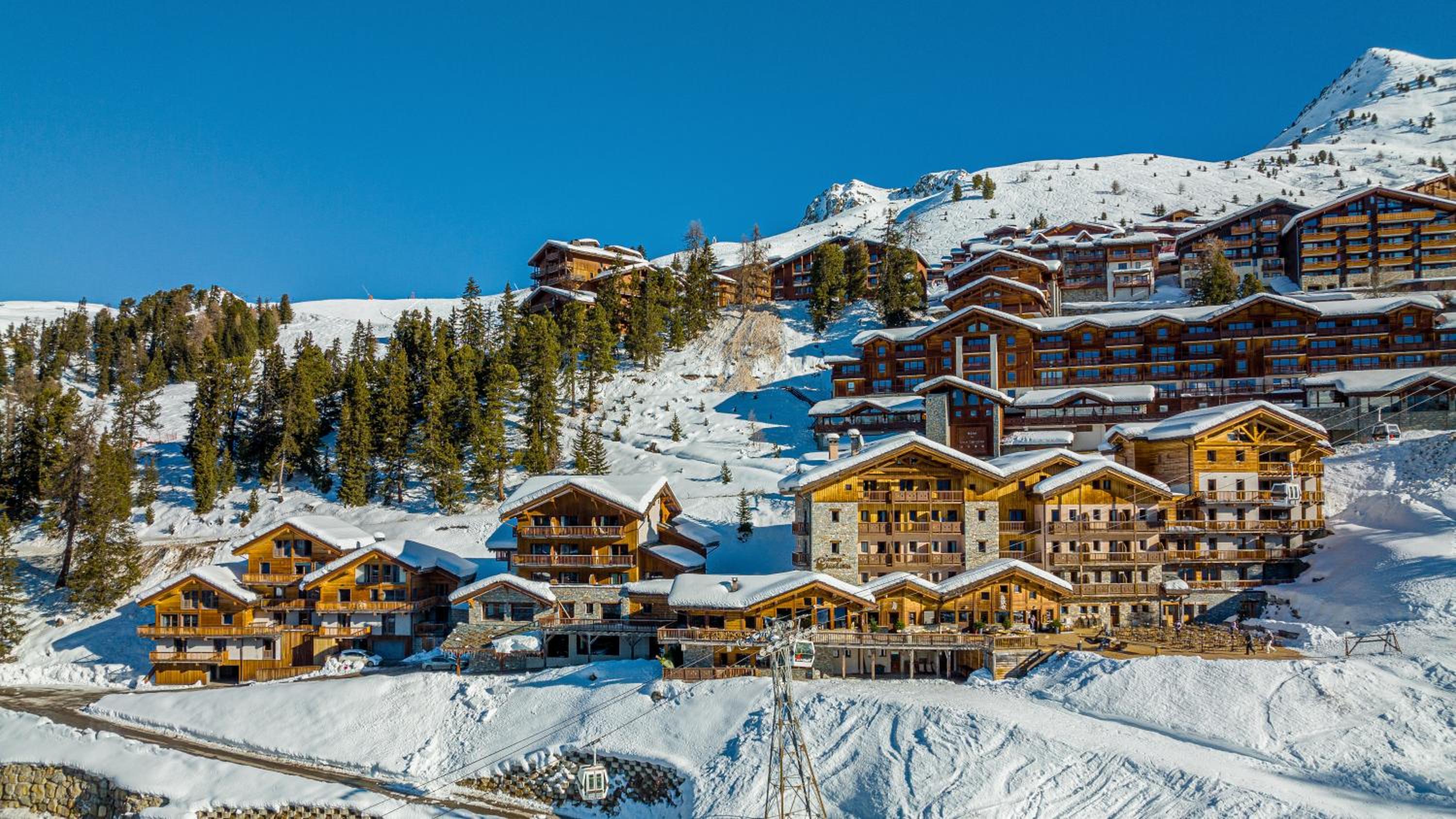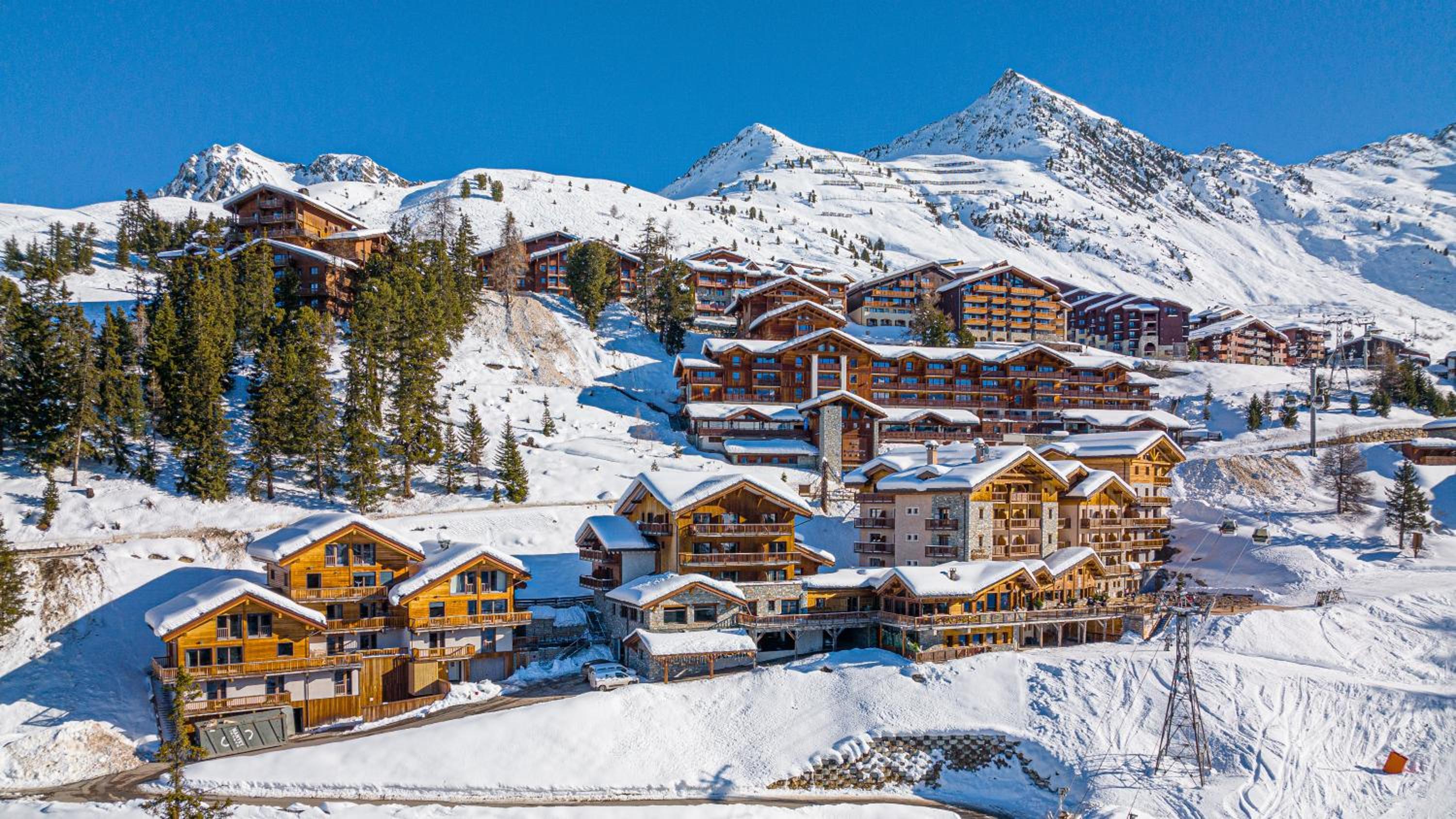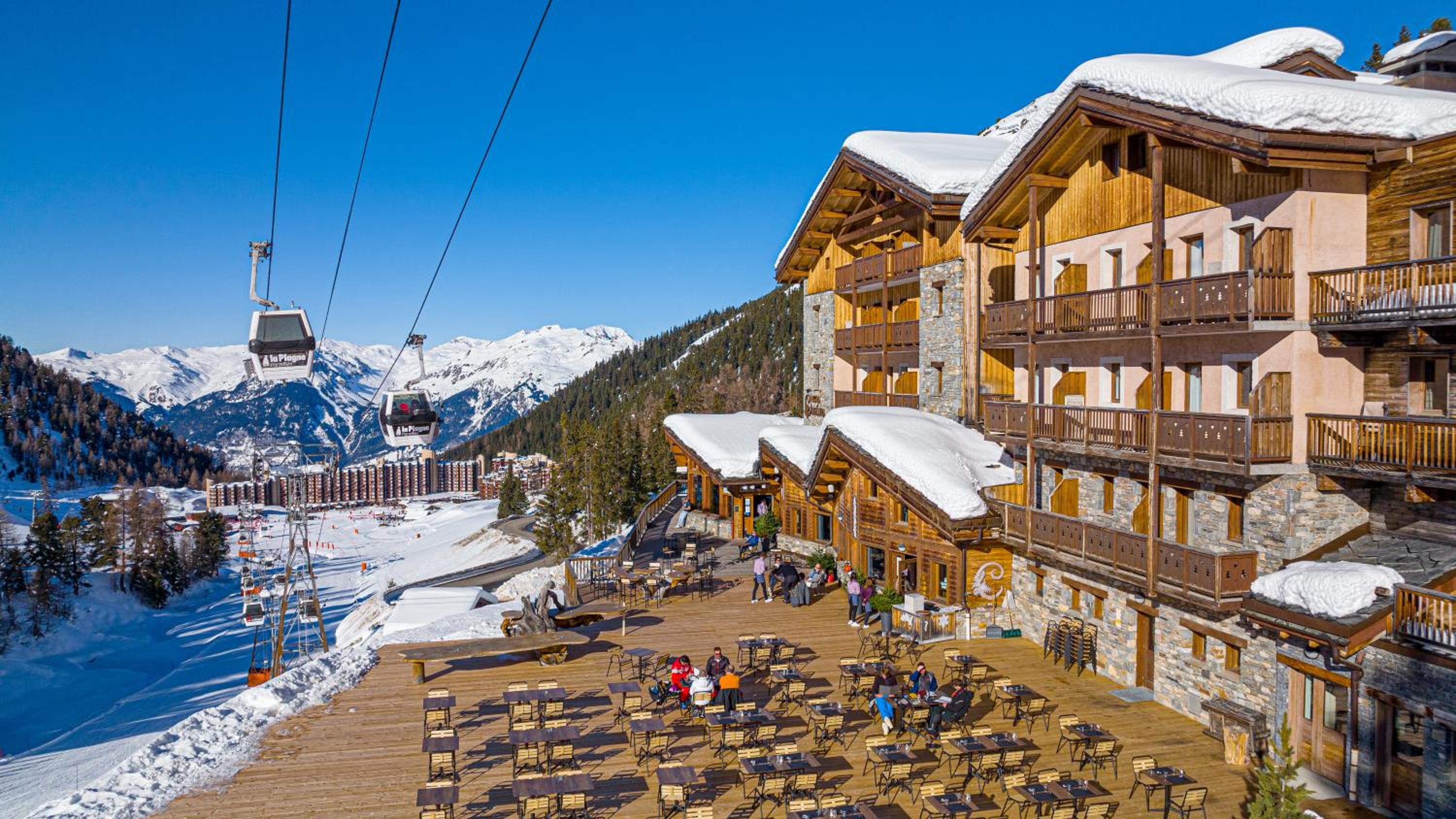 Slopeside Relaxation: Enjoy direct access to Belle Plagne ski slopes and unwind in the indoor pool, hammam, and hot tub.
