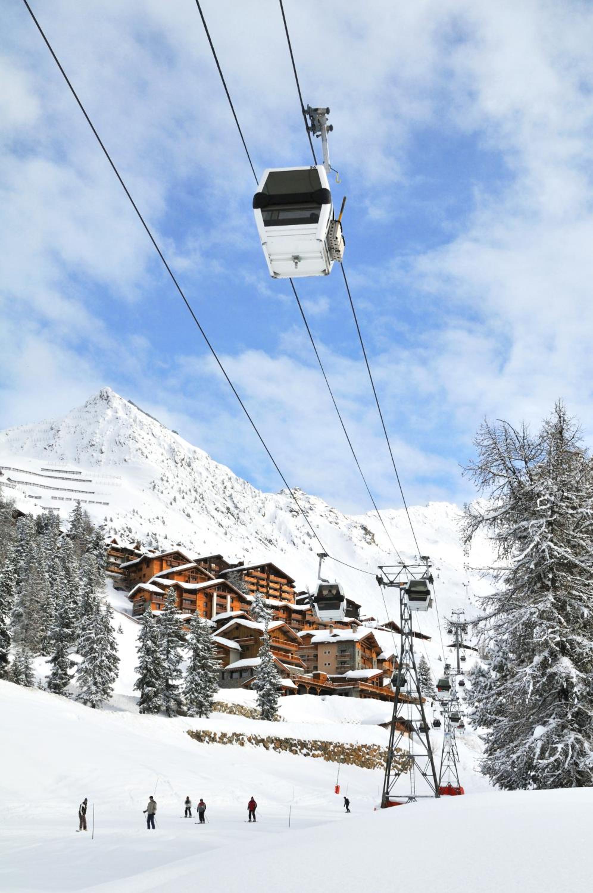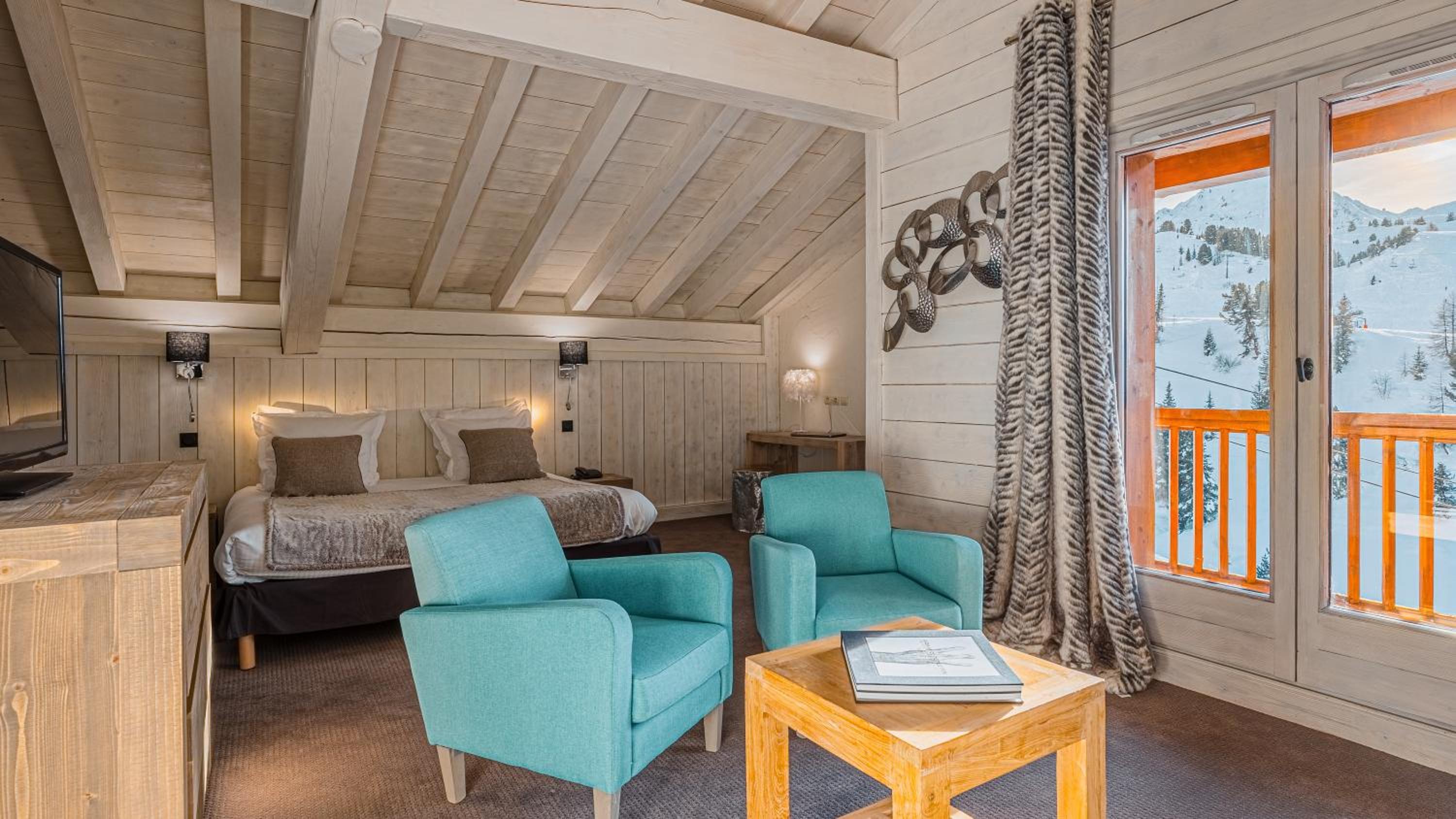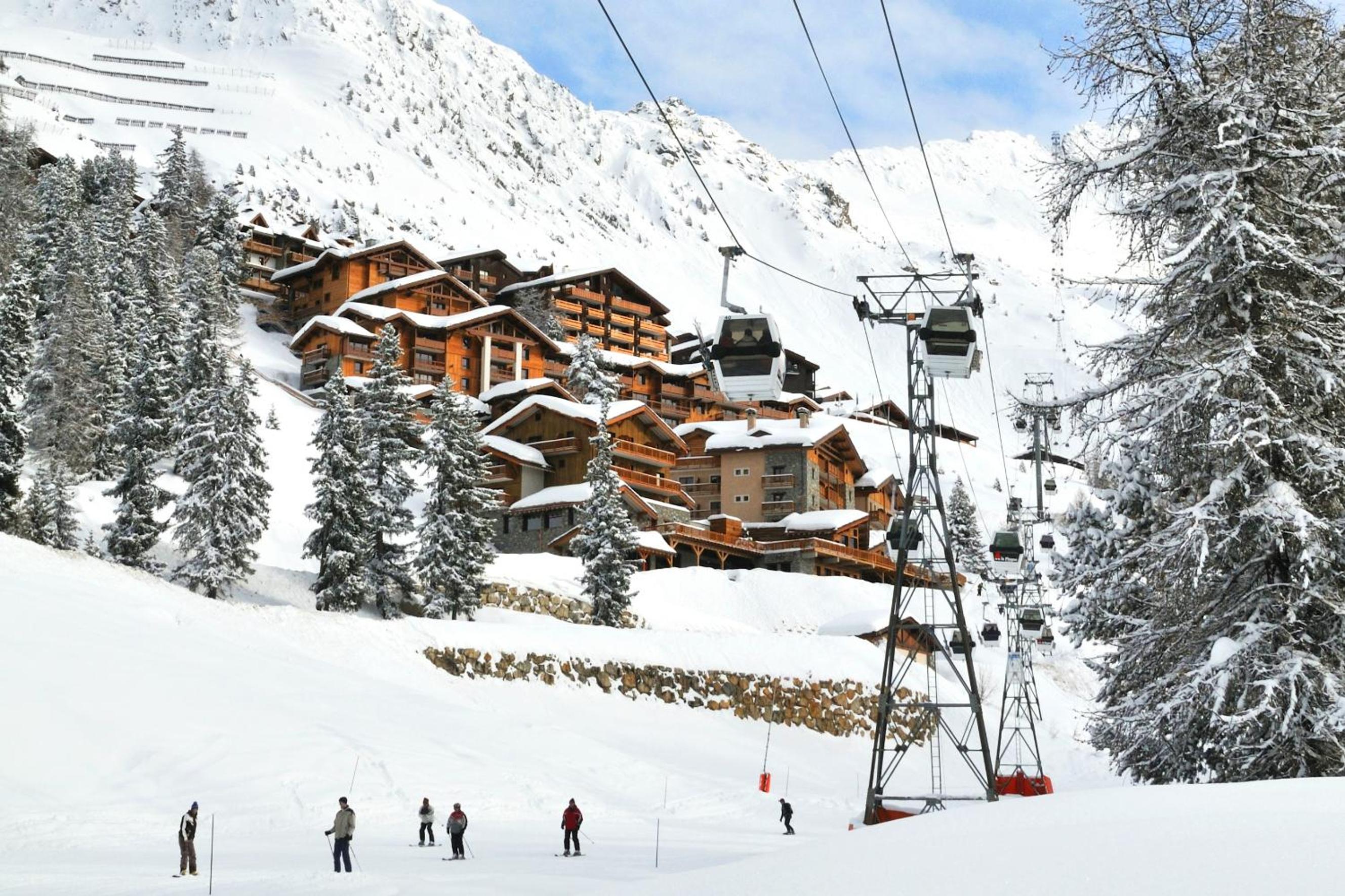 Slopeside Relaxation: Enjoy direct access to Belle Plagne ski slopes and unwind in the indoor pool, hammam, and hot tub.