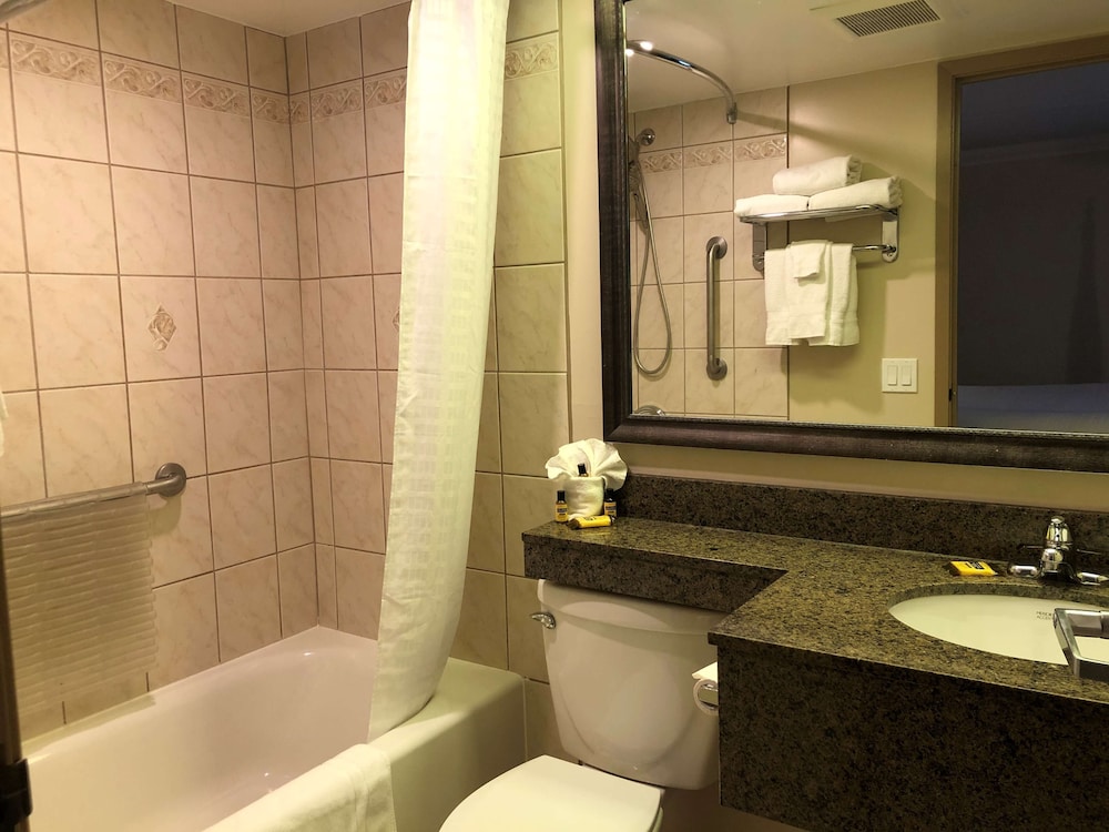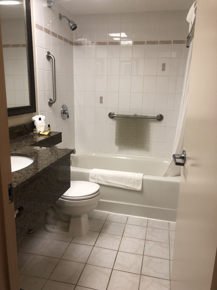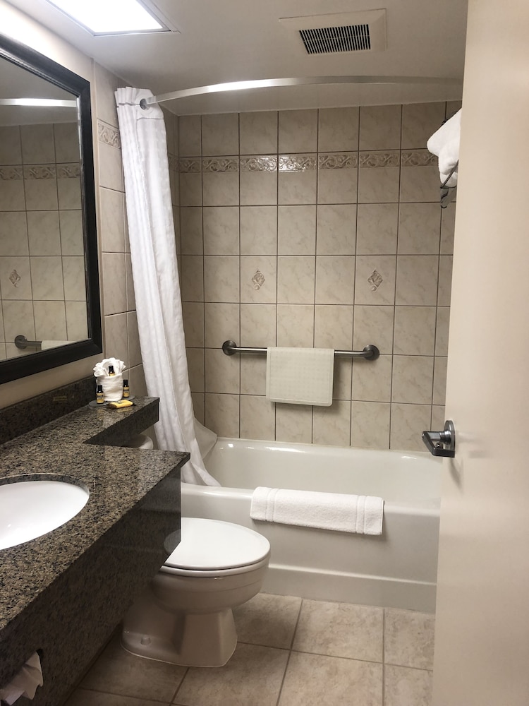 I thought the property was very clean and well kept.hotel room was spacious with a very comfortable king bed and the jetted tub was just what we needed. Pool area was stocked with towels and had washroom/change facilities right in the area. Fitness centre had a variety of newer nautilus equipment and looked like someone would be happy to use.