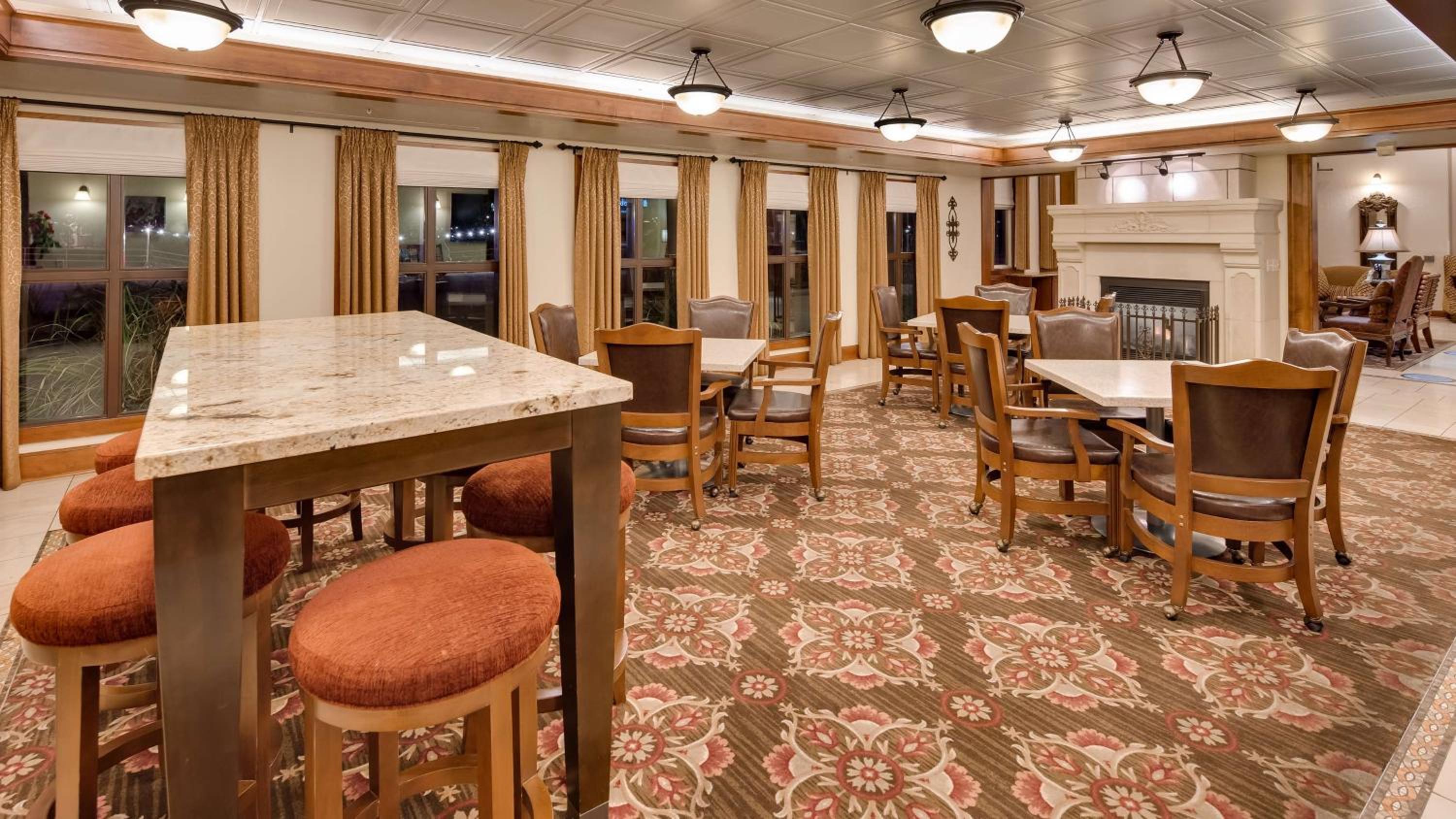 Desk staff were helpful and friendly and were able to change our room location to make sure we had a ground floor access with parking right in front of our room. Breakfast was pretty good for a hotel breakfast. We were able to walk across the street to a good restaurant with good food. Beds were great and everything was very clean.