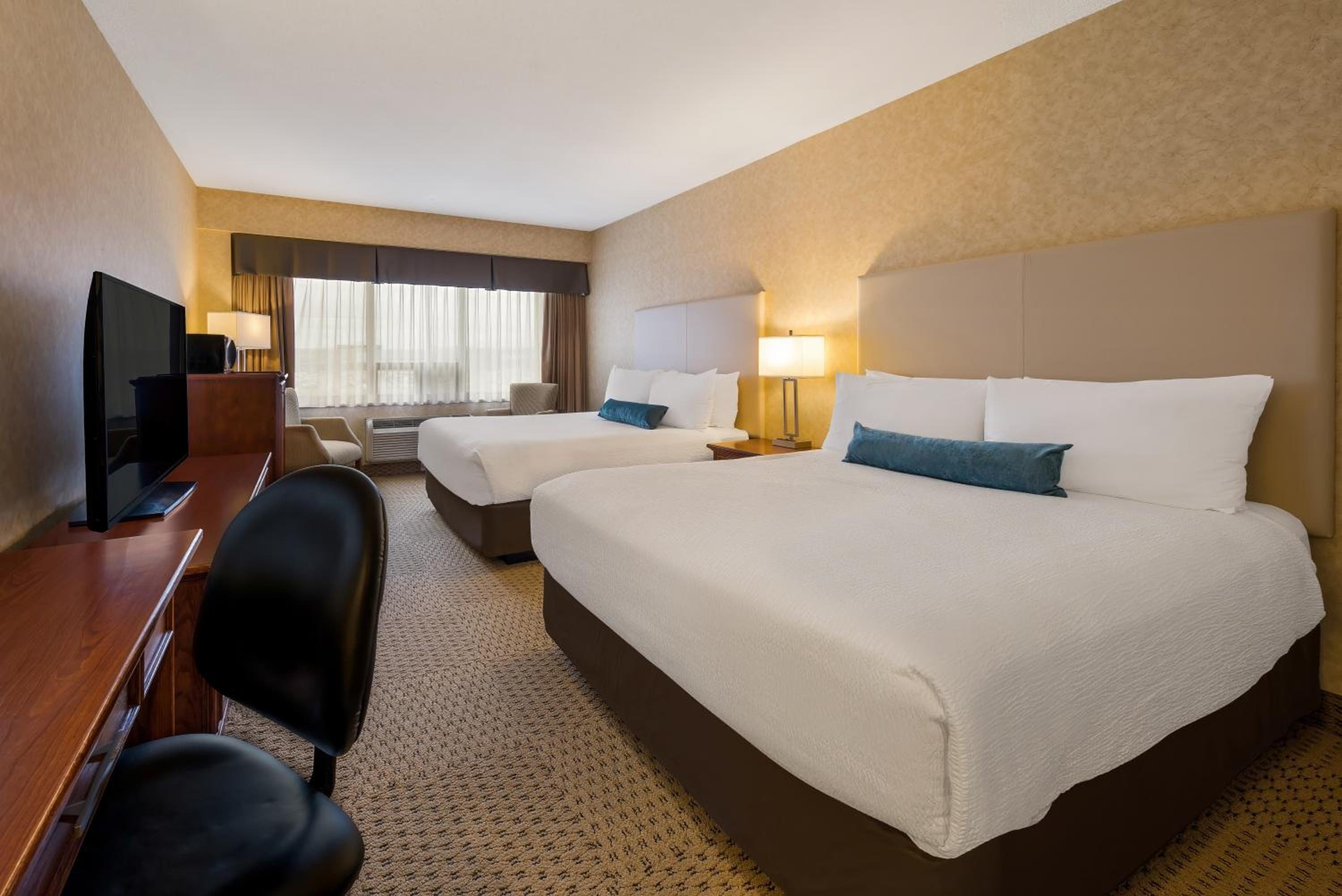 Each guest room is thoughtfully designed with a 37″ flat-screen TV and Simmons Beautyrest® Pillow Top mattresses, ensuring a restful night's sleep.
