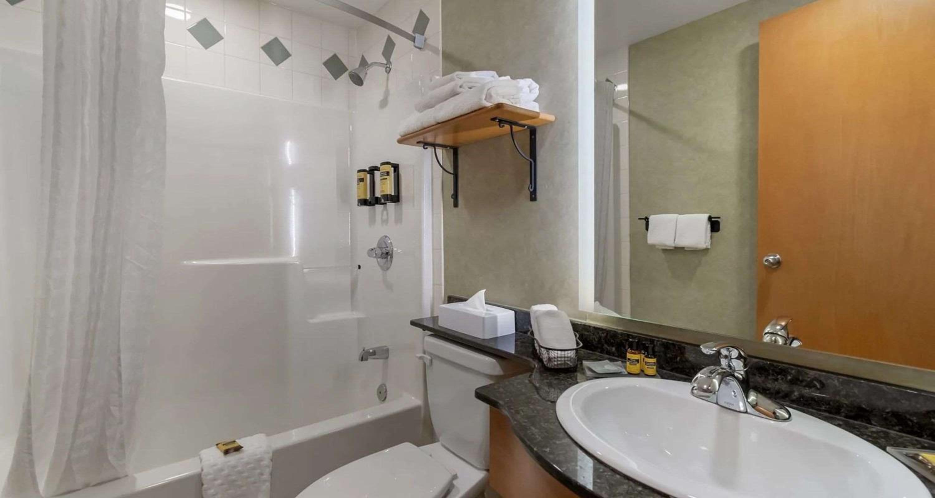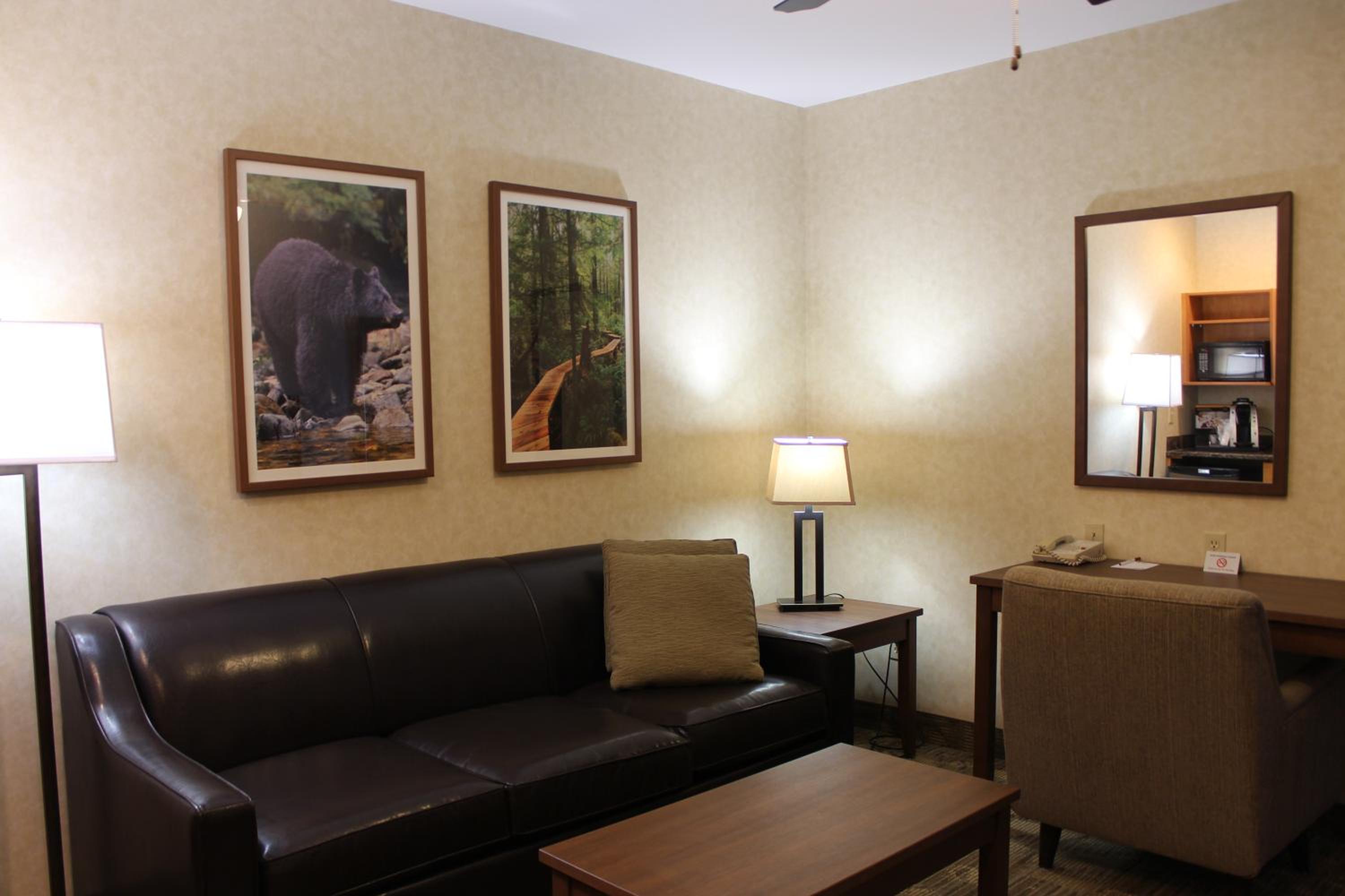 We had a family weekend. The kids enjoyed the pool and slide. It had towels for after the pool. The room was clean and comfy. We packed alot but it was easy to get around with the elevator, or the second floor stair case in the lobby that has the warms and comfort of the real wood burning fireplace. The breakfast was delicious and variety. I enjoyed the mountain snow cap scenery while having coffee ☕️ my children enjoyed the computers up stairs as well. It was fun and relaxing at once.