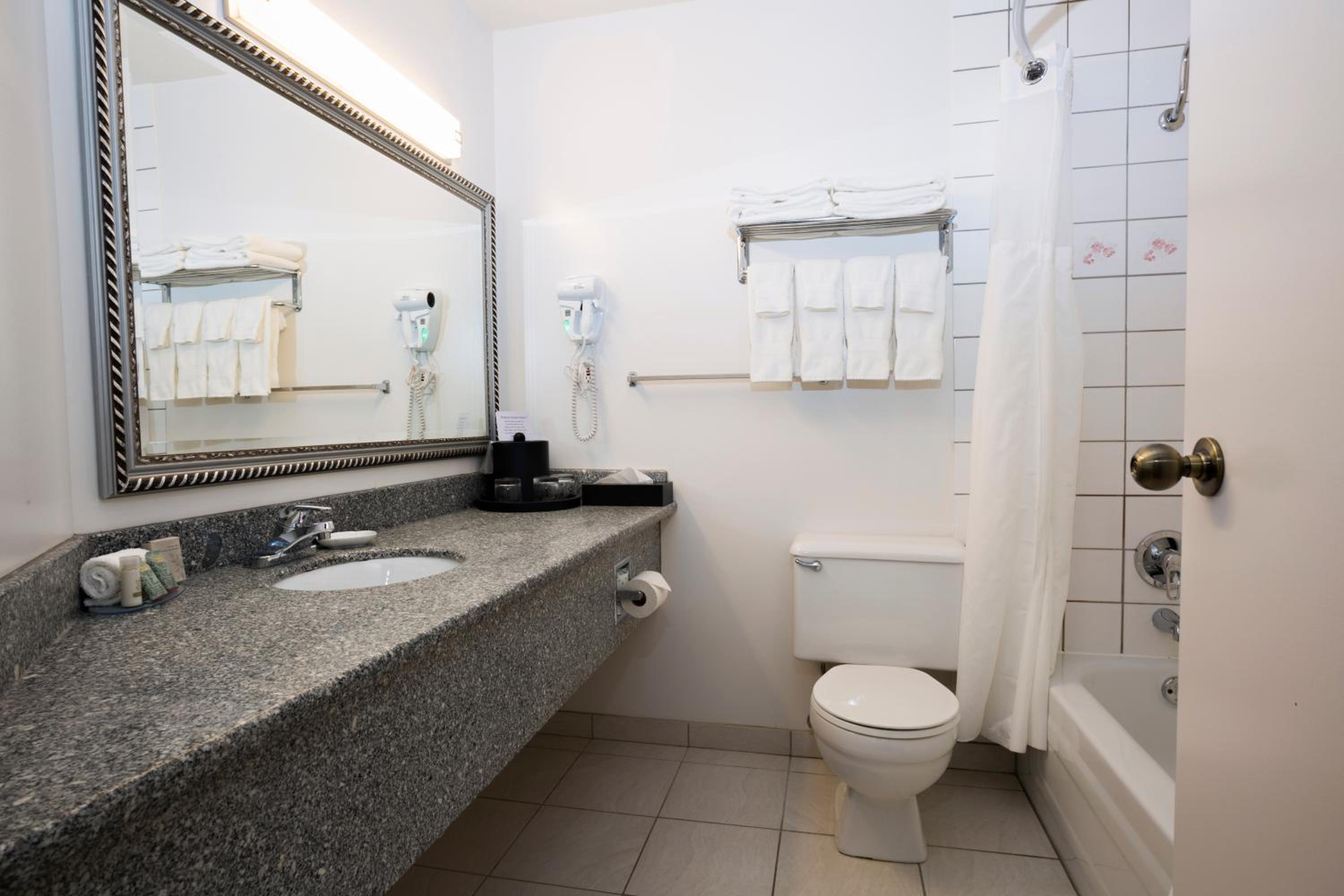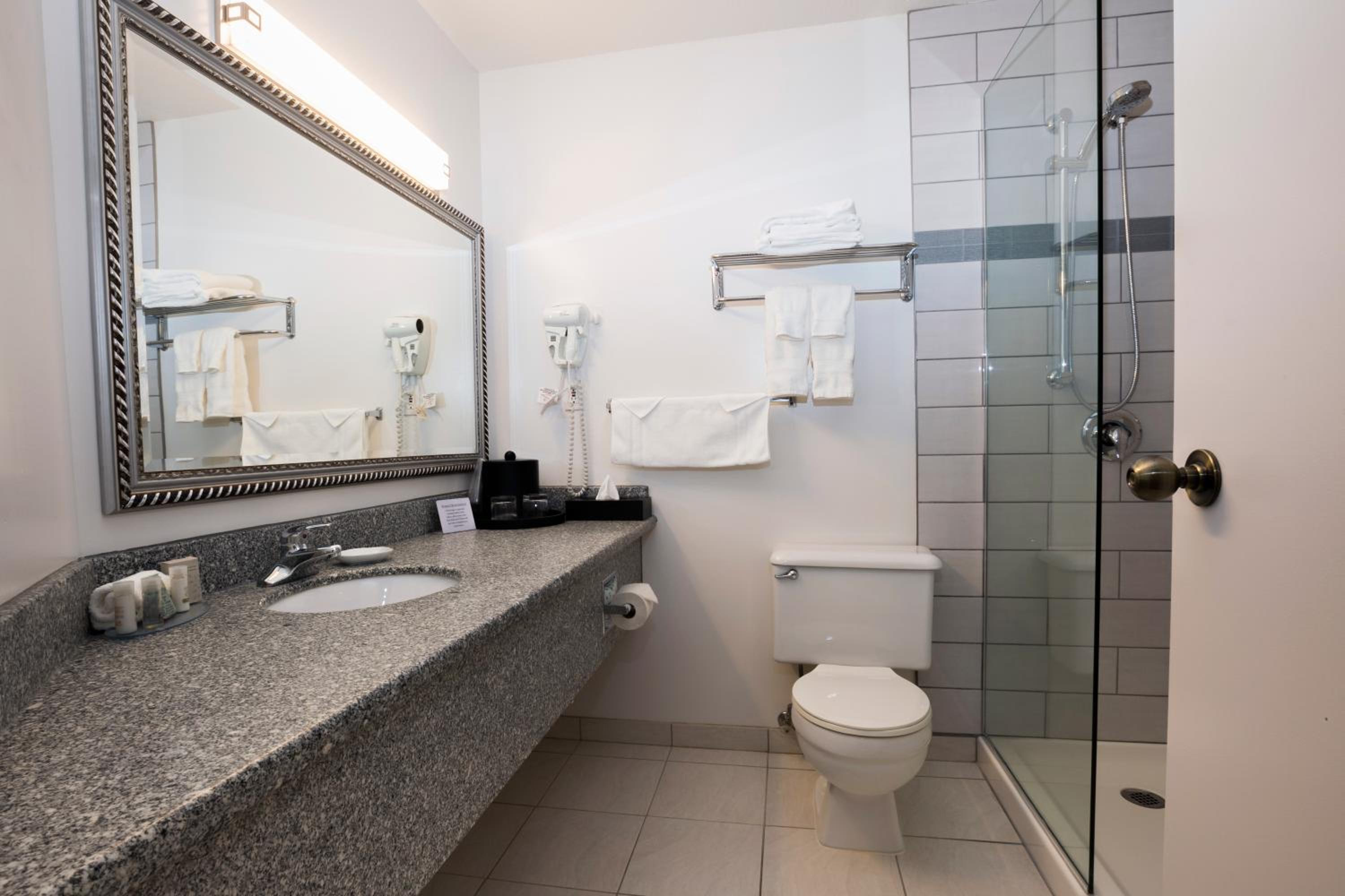 Excellent location. Close to everything: restaurants, walking trails, casino, grocery store. Bathroom was well lit, and fan worked well. Good water pressure.